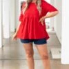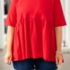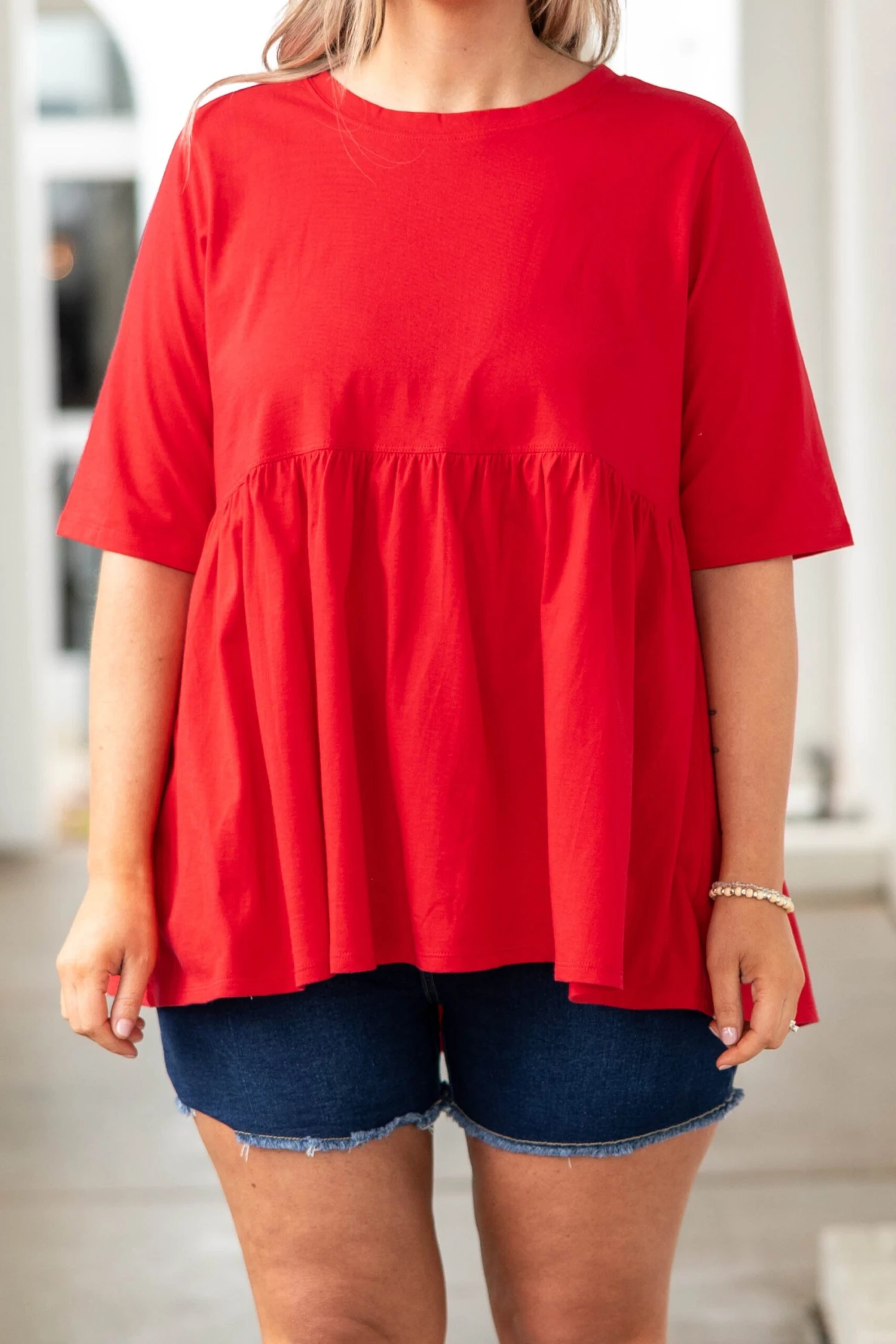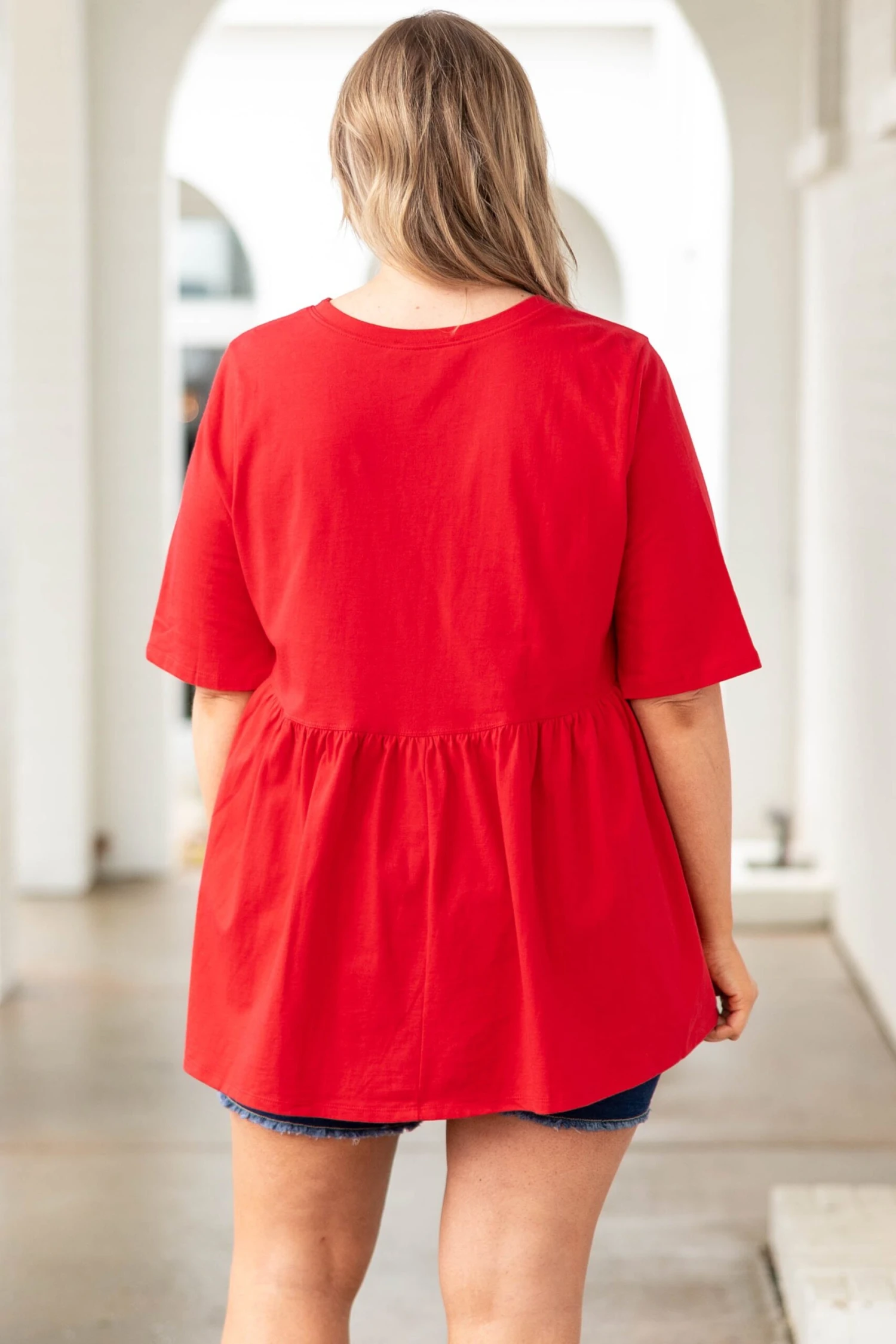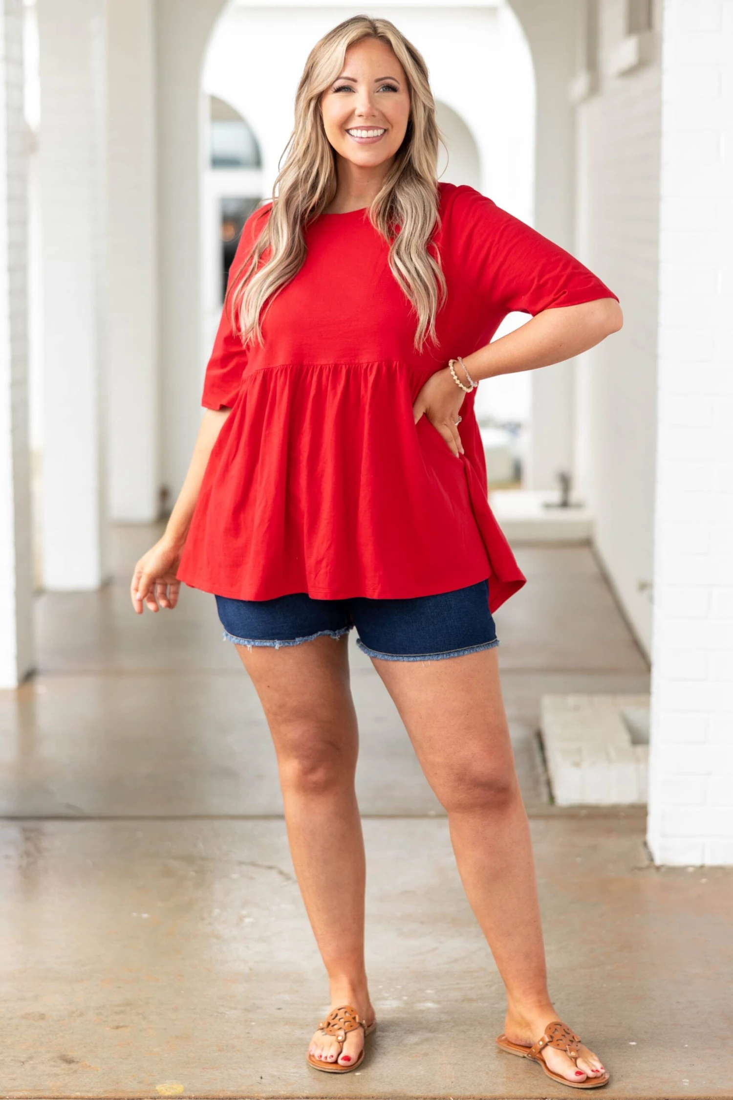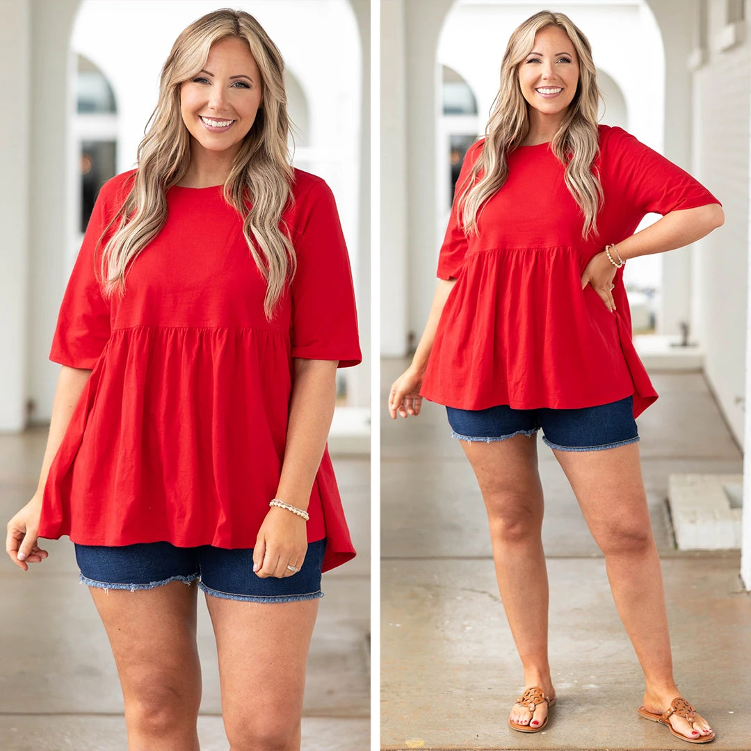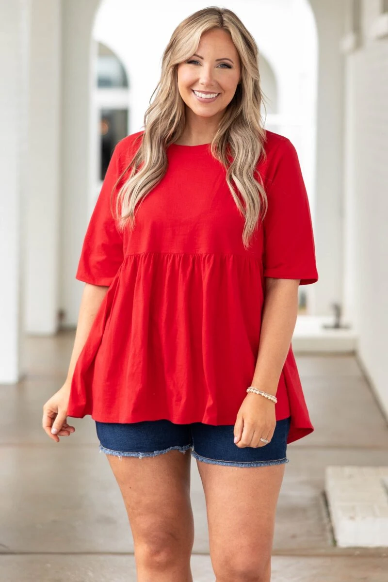 Show off your fearless soul in this top! This cutie has a bold ruby color with a babydoll style to flatter your figure! The basic style is so easy to dress up and down! Style it with shorts and sandals or heels for a look that is sure to impress!