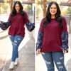 We simple LOVE this gorgeous top! This top has a bold burgundy color with a beautiful paisley design on the sleeves! We see this top paired with some cute jeggings and boots for a sassy chic look this season!
