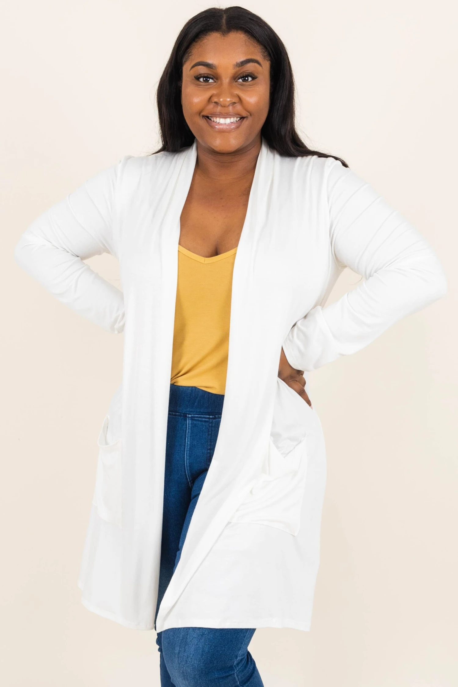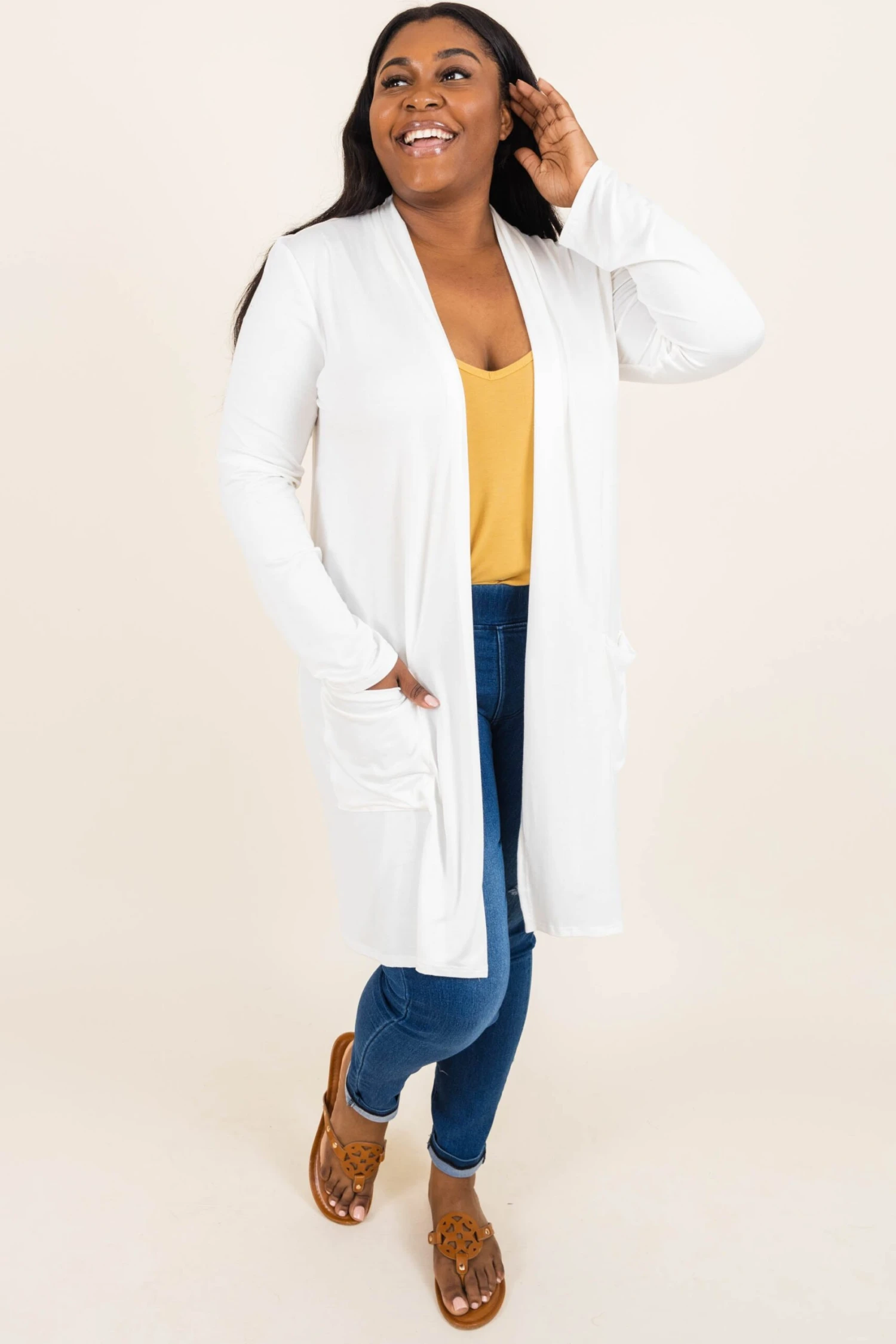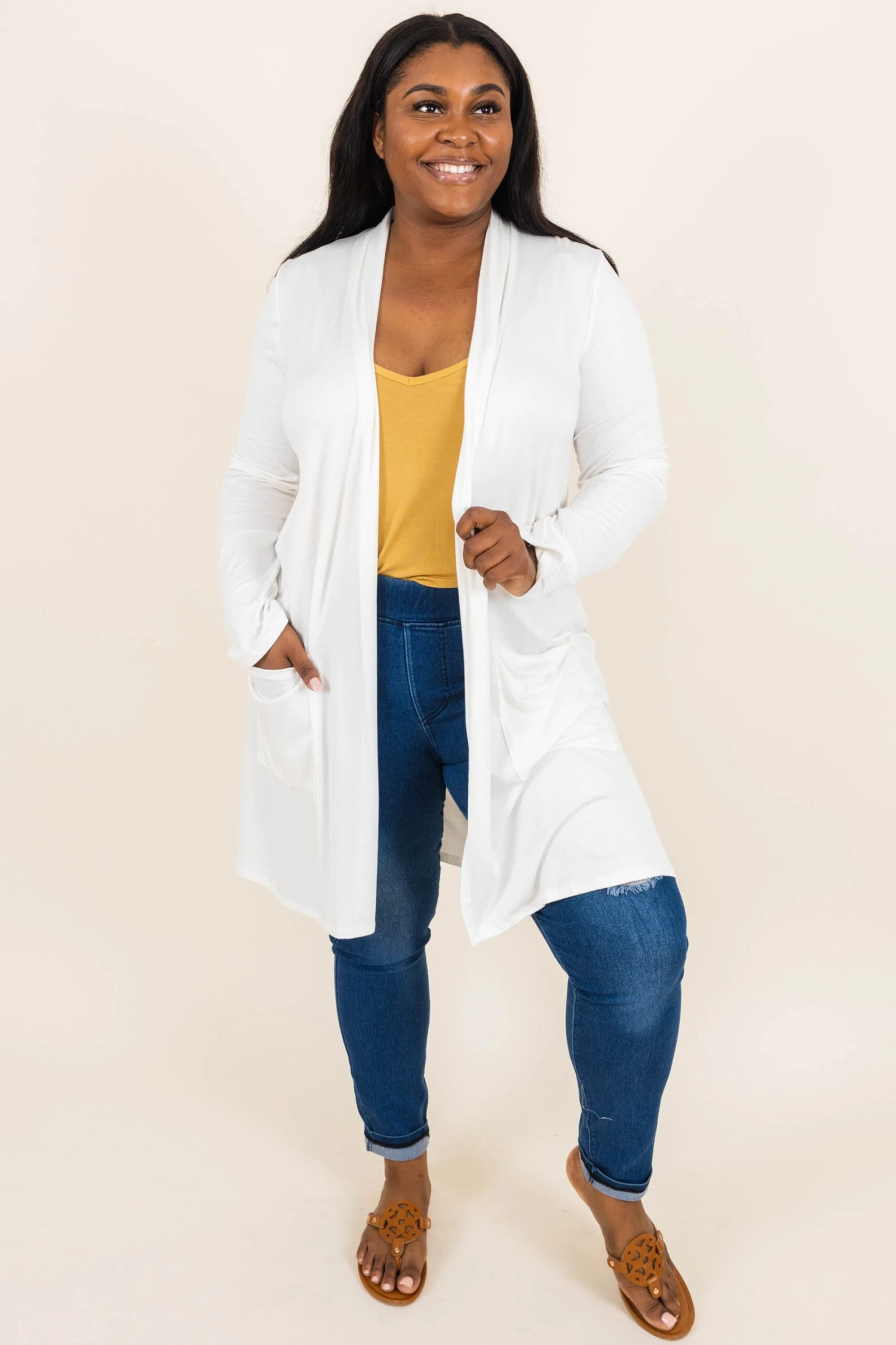 Let all your cares go in this cardigan!  It has an ivory color you can dress up or down and style with everything in your wardrobe! It’s comfortable for all-day wear, has a relaxed fit to flatter your figure, and is perfect for the season! Simply style this cardigan with a solid or patterned top and skinnies for an effortlessly chic look!Â