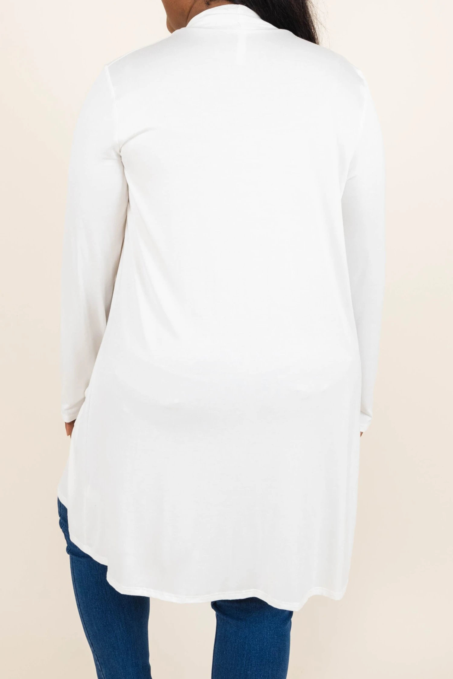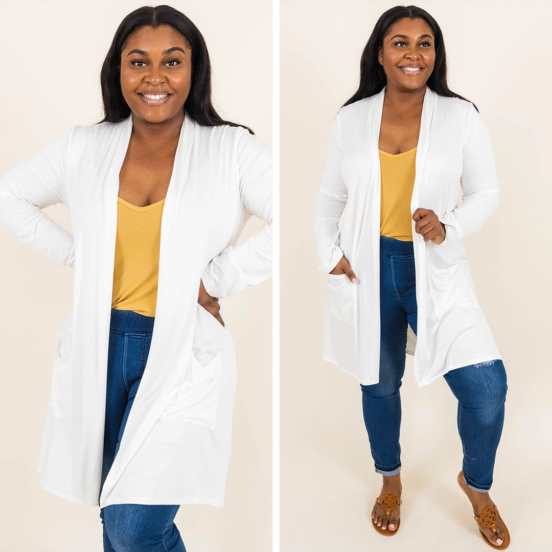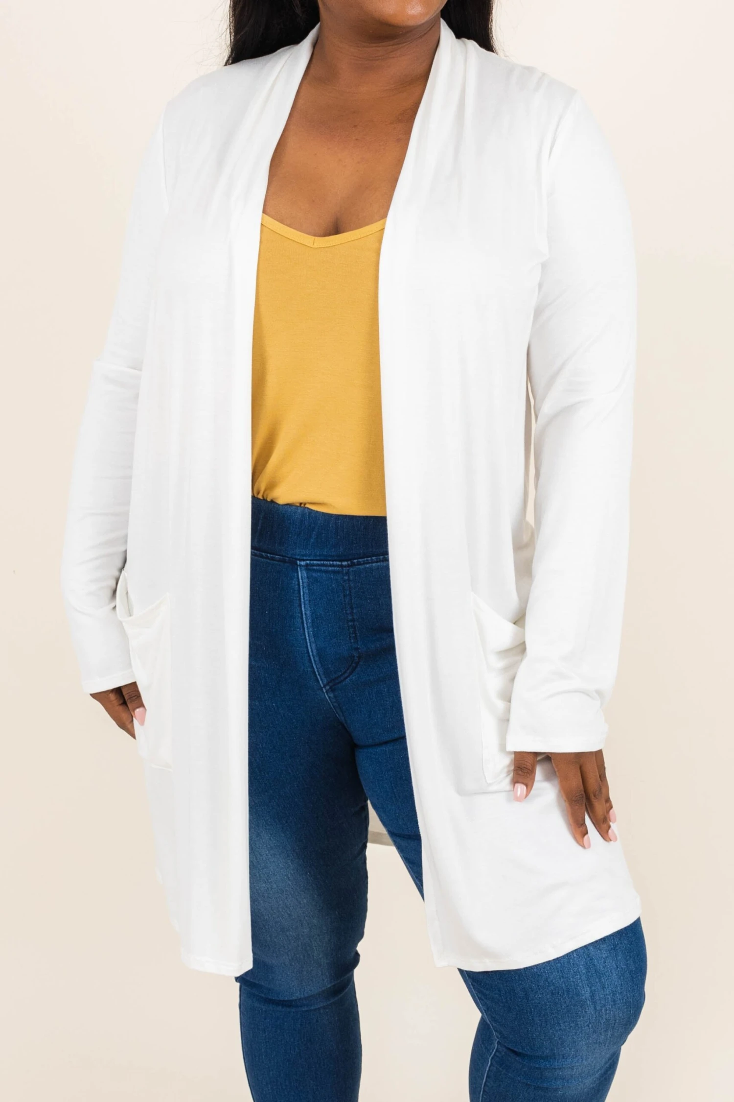 Let all your cares go in this cardigan!  It has an ivory color you can dress up or down and style with everything in your wardrobe! It’s comfortable for all-day wear, has a relaxed fit to flatter your figure, and is perfect for the season! Simply style this cardigan with a solid or patterned top and skinnies for an effortlessly chic look!Â
