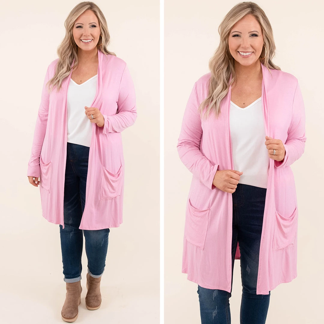 Let all your cares go in this cardigan! It has a light pink color you can dress up or down and style with everything in your wardrobe! It’s comfortable for all-day wear, has a relaxed fit to flatter your figure, and is perfect for the season! Simply, style this cardigan with a solid or patterned top and skinnies for an effortlessly chic look!