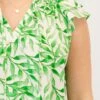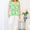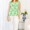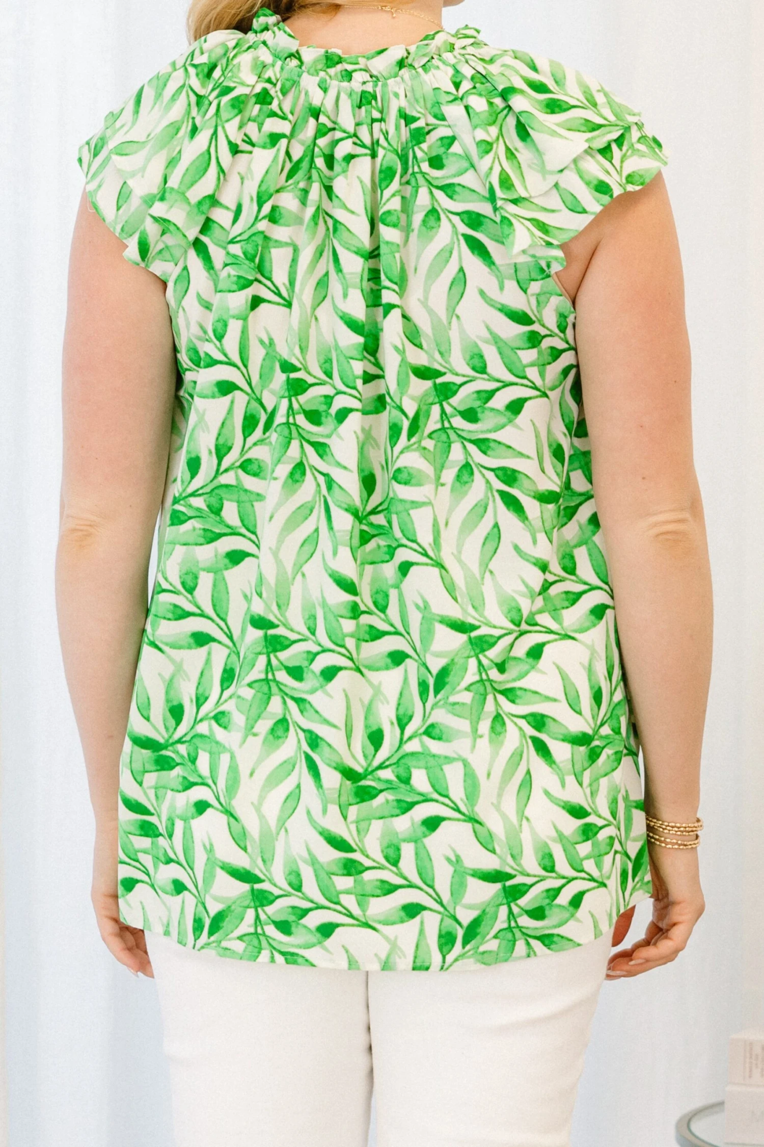 Embrace the tropics in this vibrant green top with a beautiful tropical floral print! The v-neck design and flutter sleeves add an effortless, feminine touch to your look! Make a statement and feel like a star in this top!