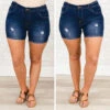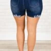 These shorts offer a stylish, distressed design and a figure-flattering fit that’s comfortable enough to wear all day! The dark denim fabric provides stretch and breathability to ensure a flawless look!