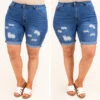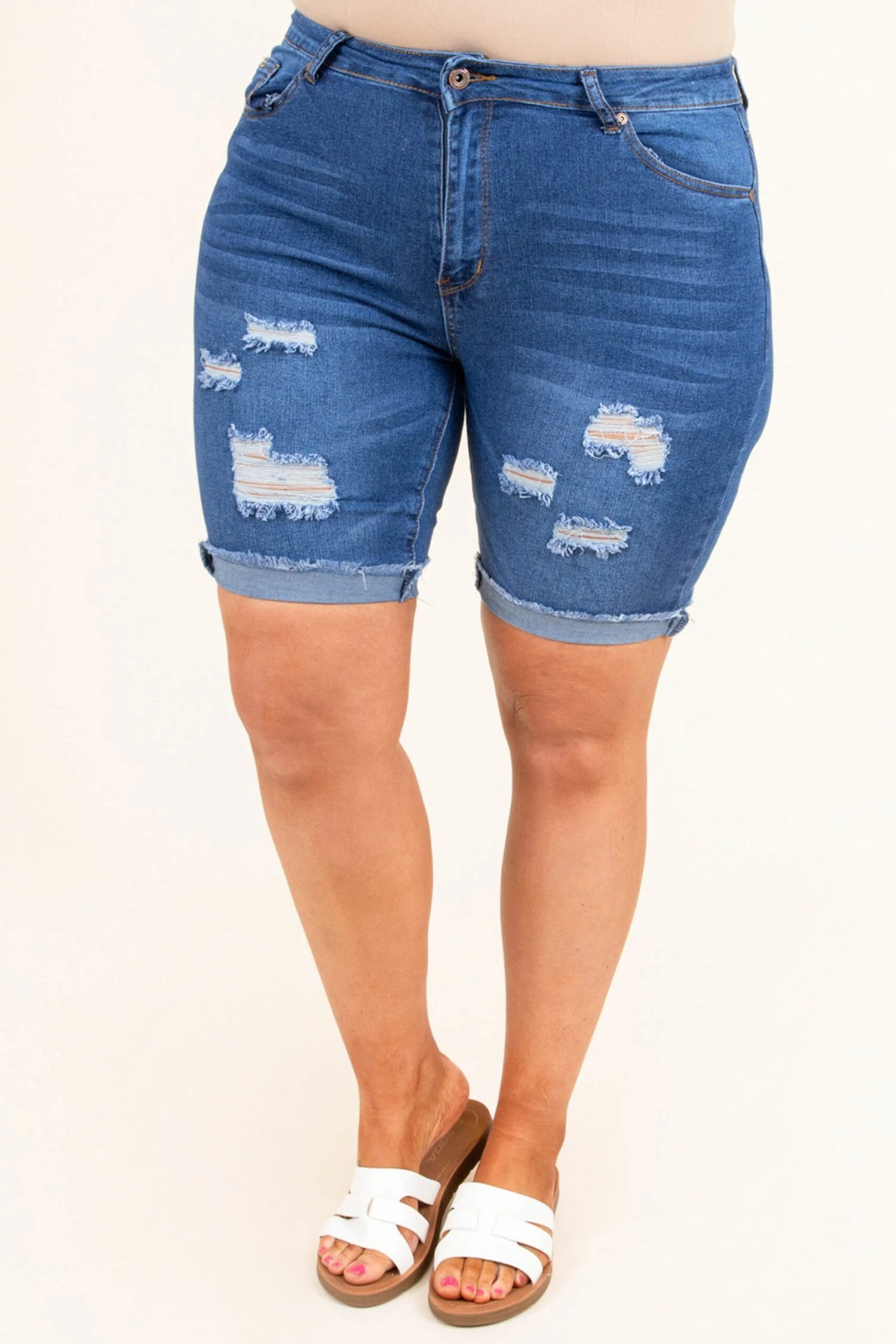 Pair these shorts with any outfit to make it feel a little sweeter! The dark blue color is a classic and the distressed design will have you walking in style! Pair these with a gorgeous top and some sandals for a look that will turn heads!