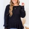 This is your final notice before this beauty is gone! This sweater has a classic black color with a stretchy, flirty fit that is perfect for all day wear! The bubble sleeves are so sweet! Style this sweater with jeggings or skinnies for a sassy chic look!