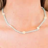 Find serenity in grabbing this cutie! This gorgeous mint choker features a delicate beaded design and a lovely floral pattern! With a touch of fun, this necklace is a beautiful addition to any outfit!Â