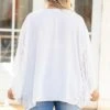 Wear this top on your next weekend outing! The white color can match everything and the raised dot pattern on the sleeves is so trendy! The tie neckline is so stylish and the flowy style is sure to flatter everyone! Pair this cutie with some skinnies and neutral sandals for an stunning look!