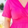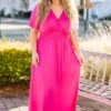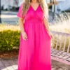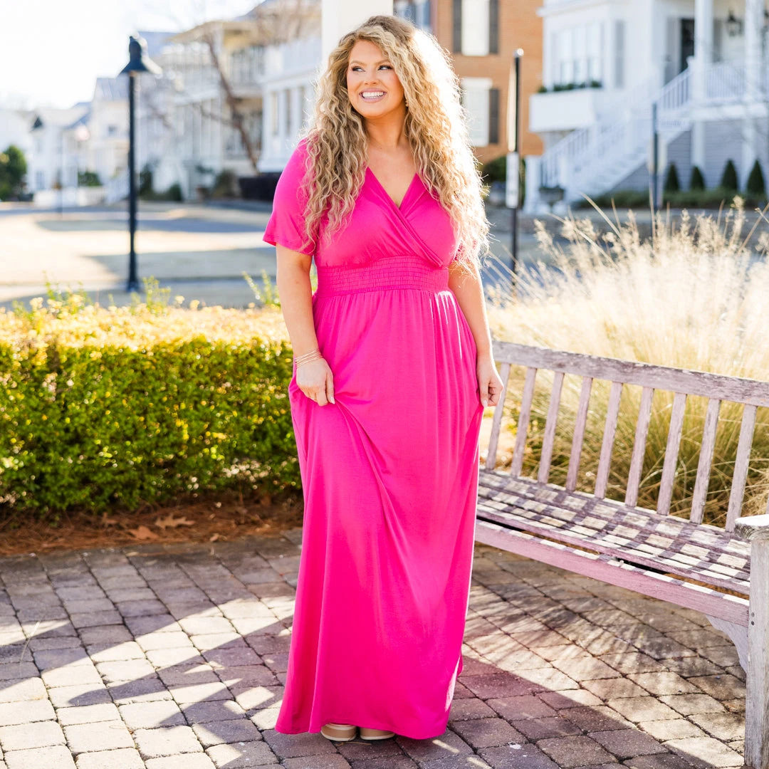 Get ready to turn heads in the Flawless Expectations Dress! With a smocked waistline, functional pockets, and a flowing maxi silhouette, this dress will make you look effortlessly chic! Perfect for any occasion, you’ll feel confident and stylish in this fuchsia dress!