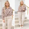 You will feel flawless in this blouse! It has a trendy leopard print and a cool knot detail at the hem. Style this with black jeans and fun earrings for a chic outfit!