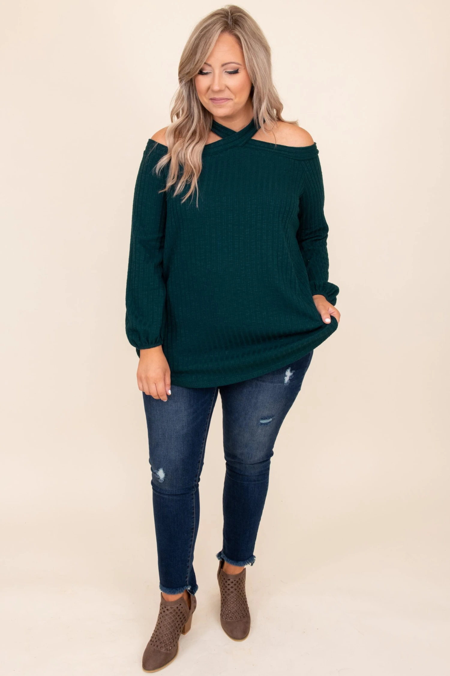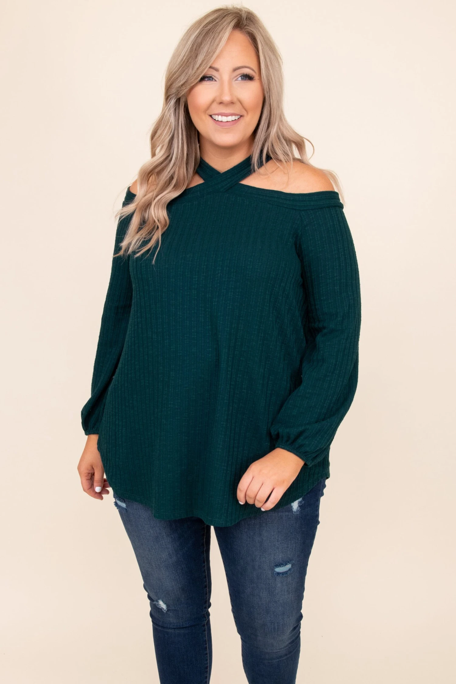 All this shirt needs is you and your flirtatious smile! This top has a sleek hunter green color that is perfect for the holiday season! It’s comfortable for all day wear, has a figure-flattering fit, and features the cutest cold-shoulder design for the ultimate style! Pair this top with your favorite skinnies and booties for an effortlessly sassy look!