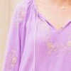 Float into the season with this beauty in your possession! This top was crafted with tassel ties and delicate embroidery detailing, that will transport you to a world of relaxation and style! The flowy fit provides comfort and versatility, while the pretty lavender color adds a touch of flair to your style!