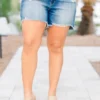 Float to the checkout with these adorable shorts! They have a trendy dark wash are a perfect addition to any sunny day outfit! With a stylish distressed hemline, these shorts elevate your look while providing comfort for all-day wear! Expertly designed for a trendy yet versatile look!
