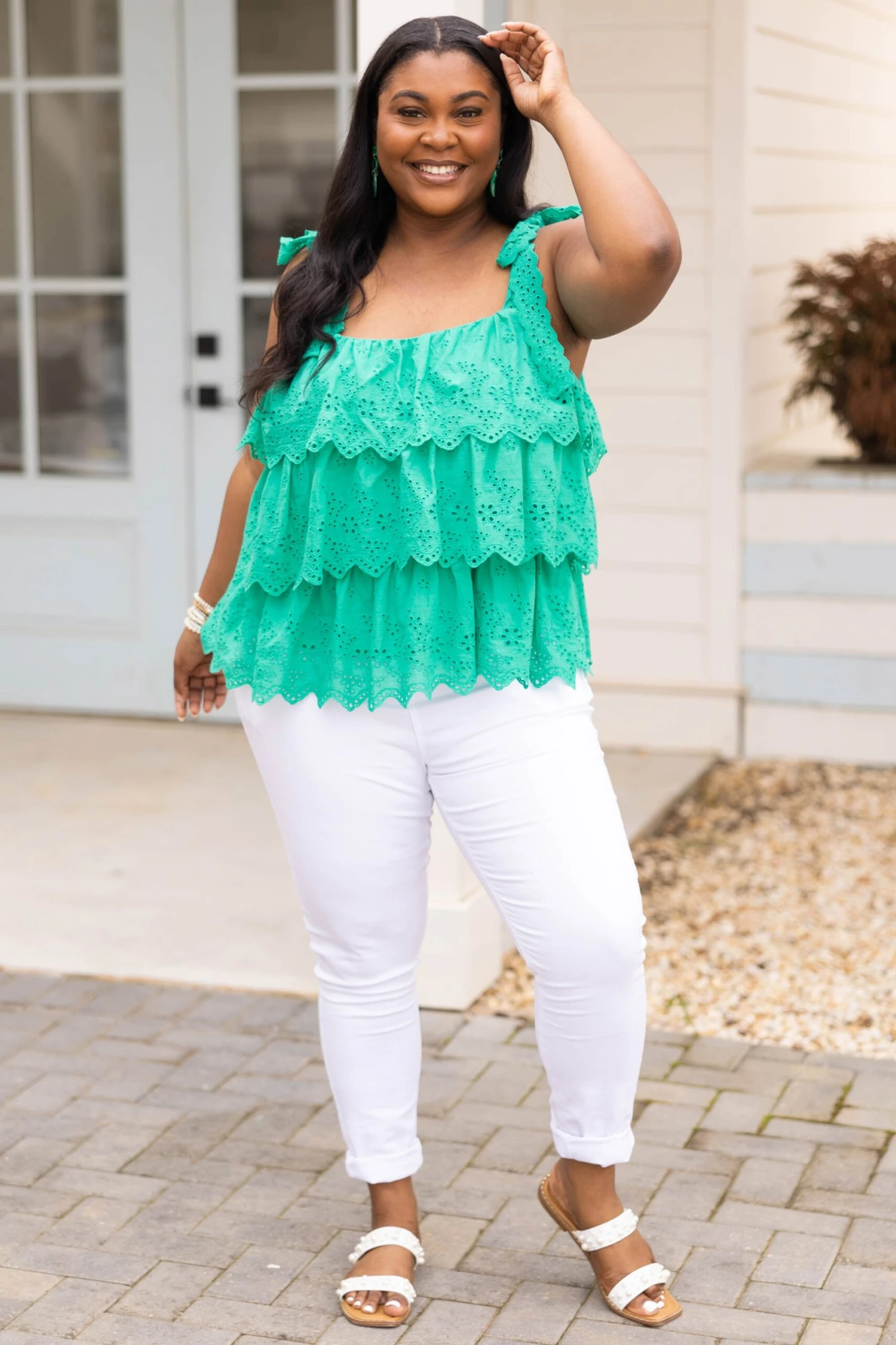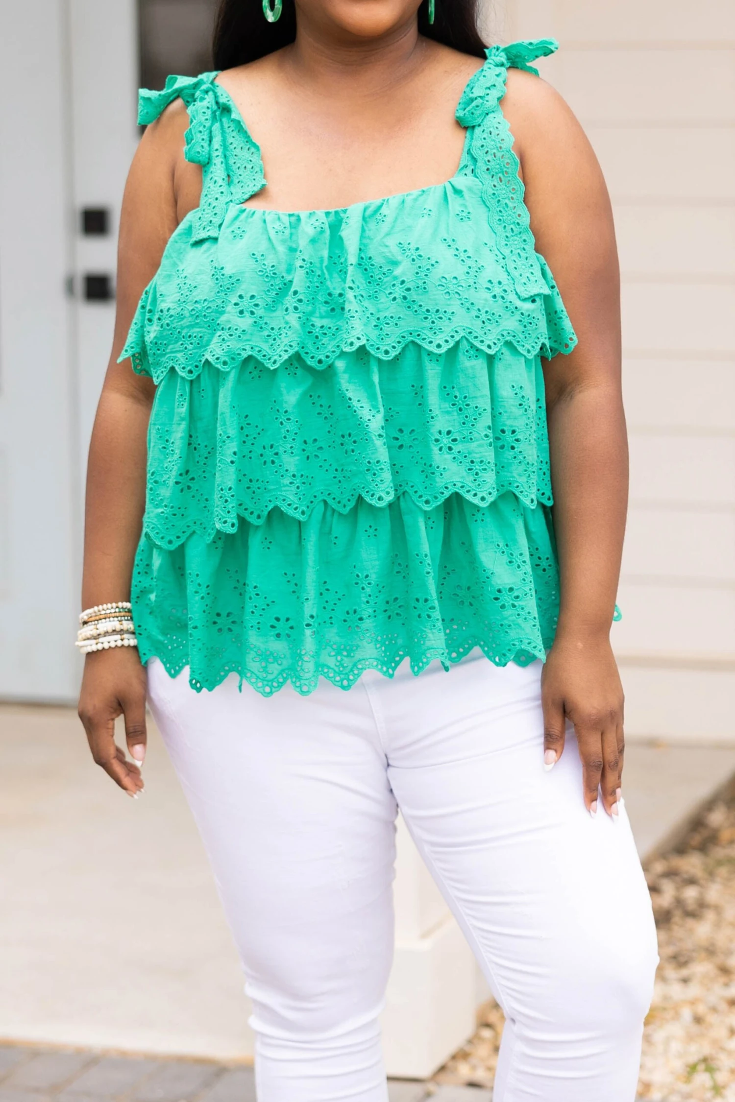 Flaunt your beauty while wearing this gorgeous top! Showcasing a bright emerald hue with lacy detailing, this top provides a flattering and flirty fit! Perfect for any occasion, add this eye-catching piece to your ensemble for an unforgettable chic look!
