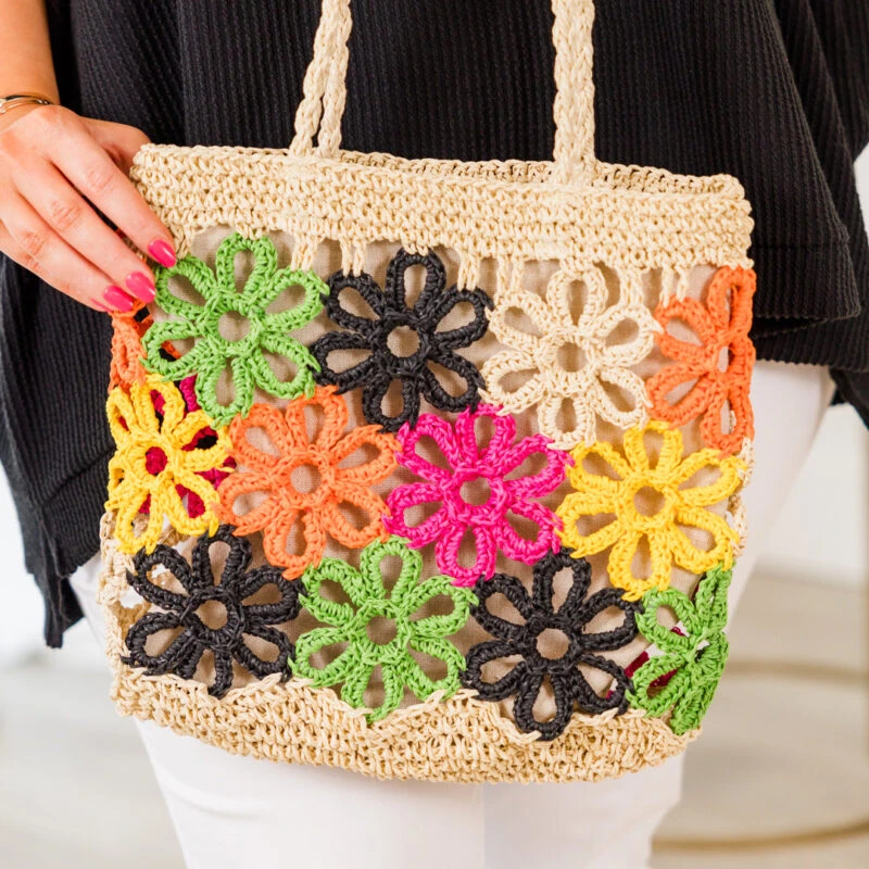 Add some flower power to your everyday look with our Floral Meadow Handbag! Made with a straw crochet design and a bold multi-color floral pattern, this bag is not only stylish but also perfect for storing all your necessities! Elevate your style and bring some fun into your life with this quirky bag!