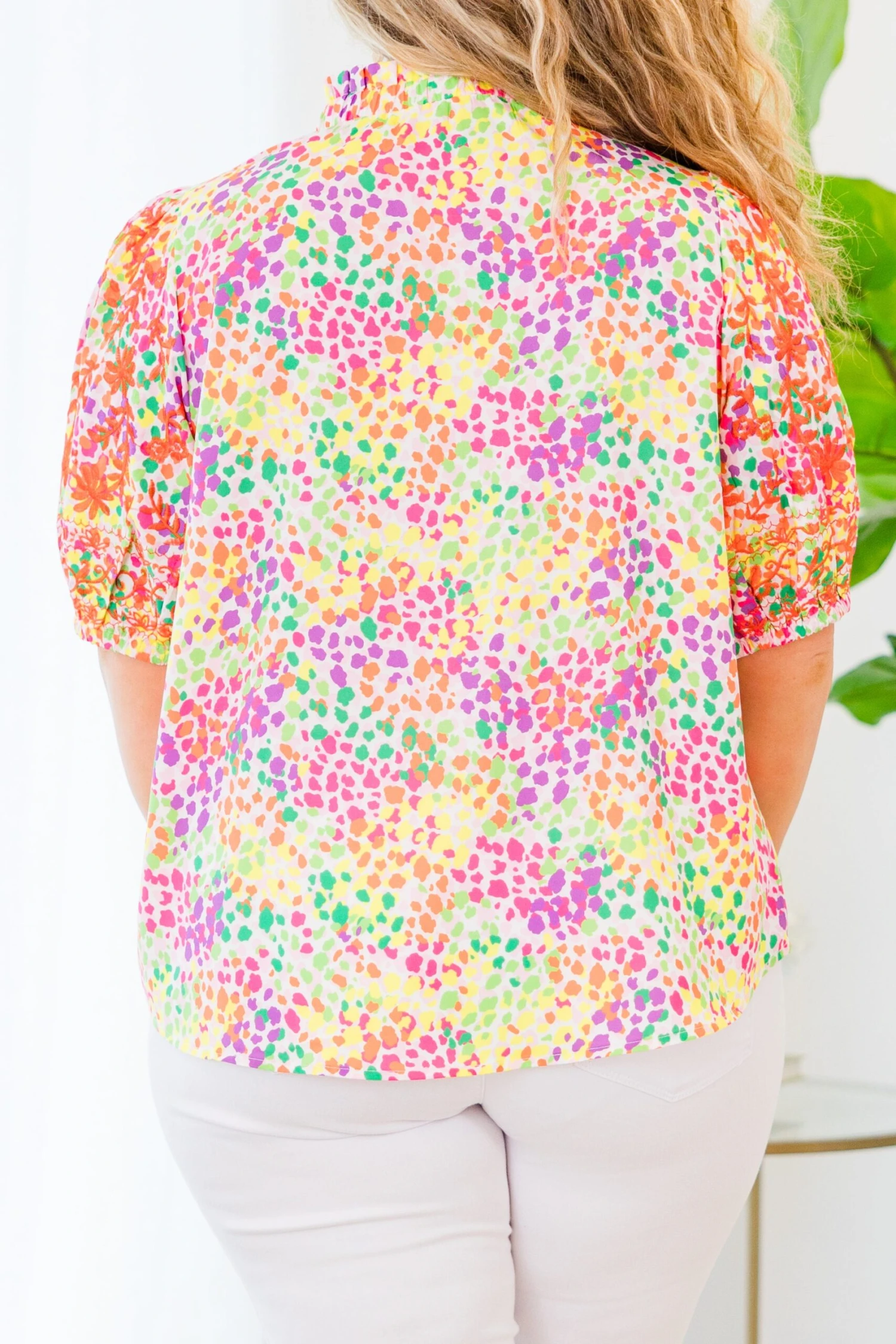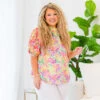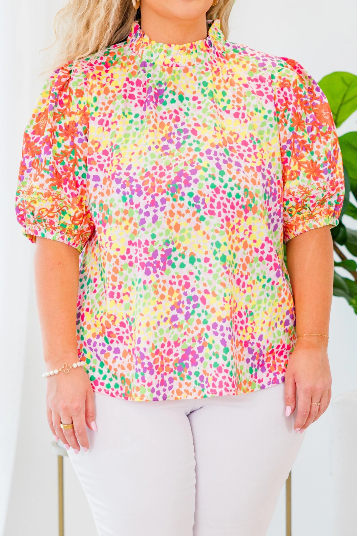 Embrace playful elegance with our Flower Festival Top in pink! This eye-catching piece features a colorful animal print, accented by intricate orange embroidery on the sleeves! Fun and flirty, it’s the perfect addition to your wardrobe for a touch of whimsy!