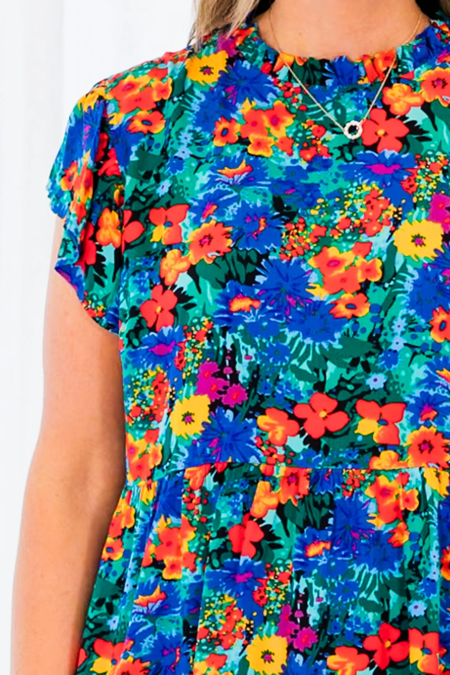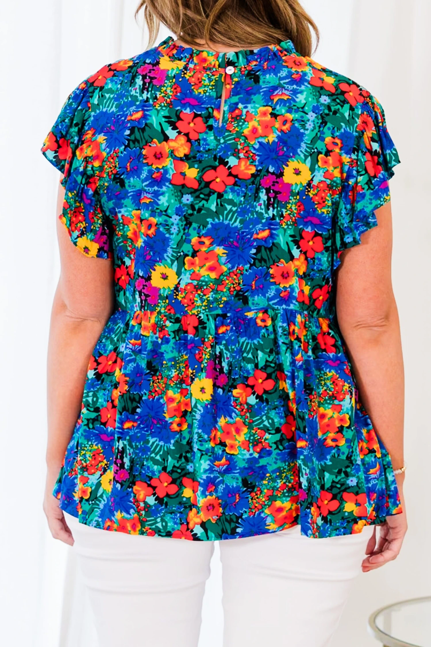 This top is the missing patch to your wardrobe! This beautifully designed top features flutter sleeves, a vibrant floral pattern, and elegant ruffle detailing! The flowy fit provides a comfortable and flattering silhouette, perfect for any occasion.!Â