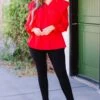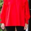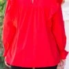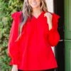 Flutter around in style with this lovely top in a stunning red hue! This top features playful ruffle and pleated detailing, perfect for any occasion! A must-have addition to your wardrobe!