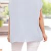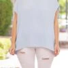 Our love flutters for this beautiful top! The light blue color is so easy to pair with all of your faves! Dress it up with your favorite pants and heels or keep it casual with some skinnies and slides for the ultimate chic look!
