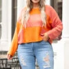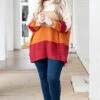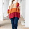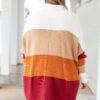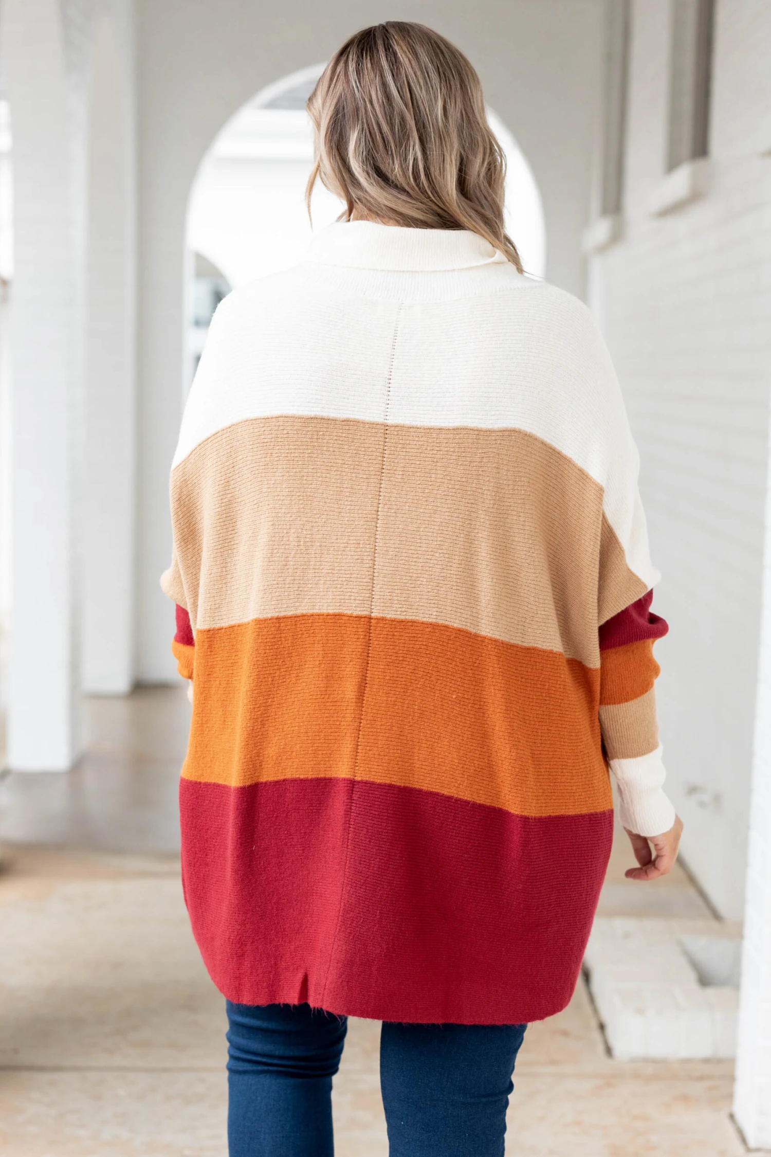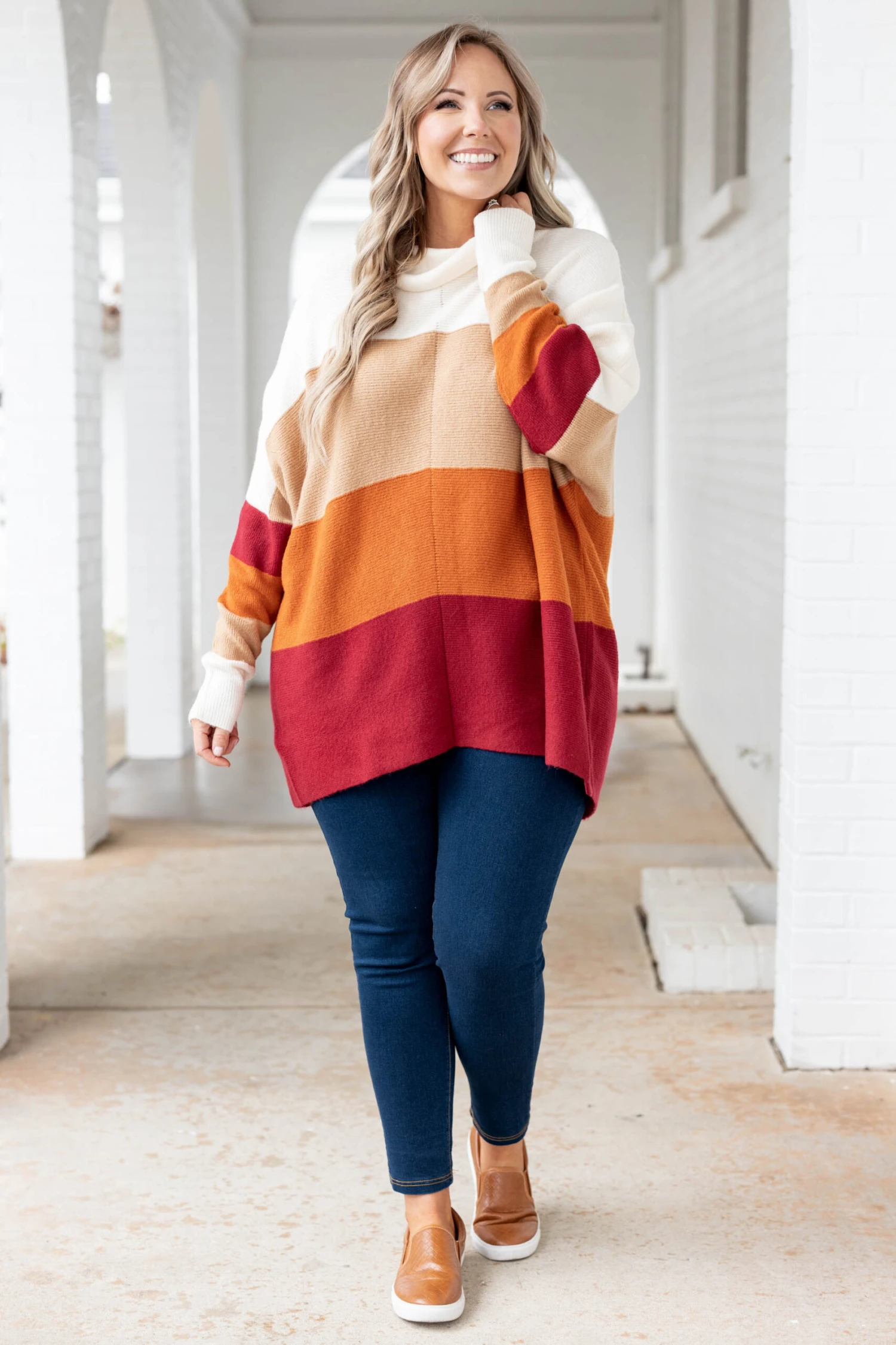 Fly above the rest with this showstopper! This sweater has a lovely crimson color with a sweet colorblock design that is just in time for the season! The high neckline and cozy fit is perfect for keeping you warm throughout the season! Style this sweater with jeggings and sneakers for a comfy, casual look!