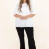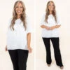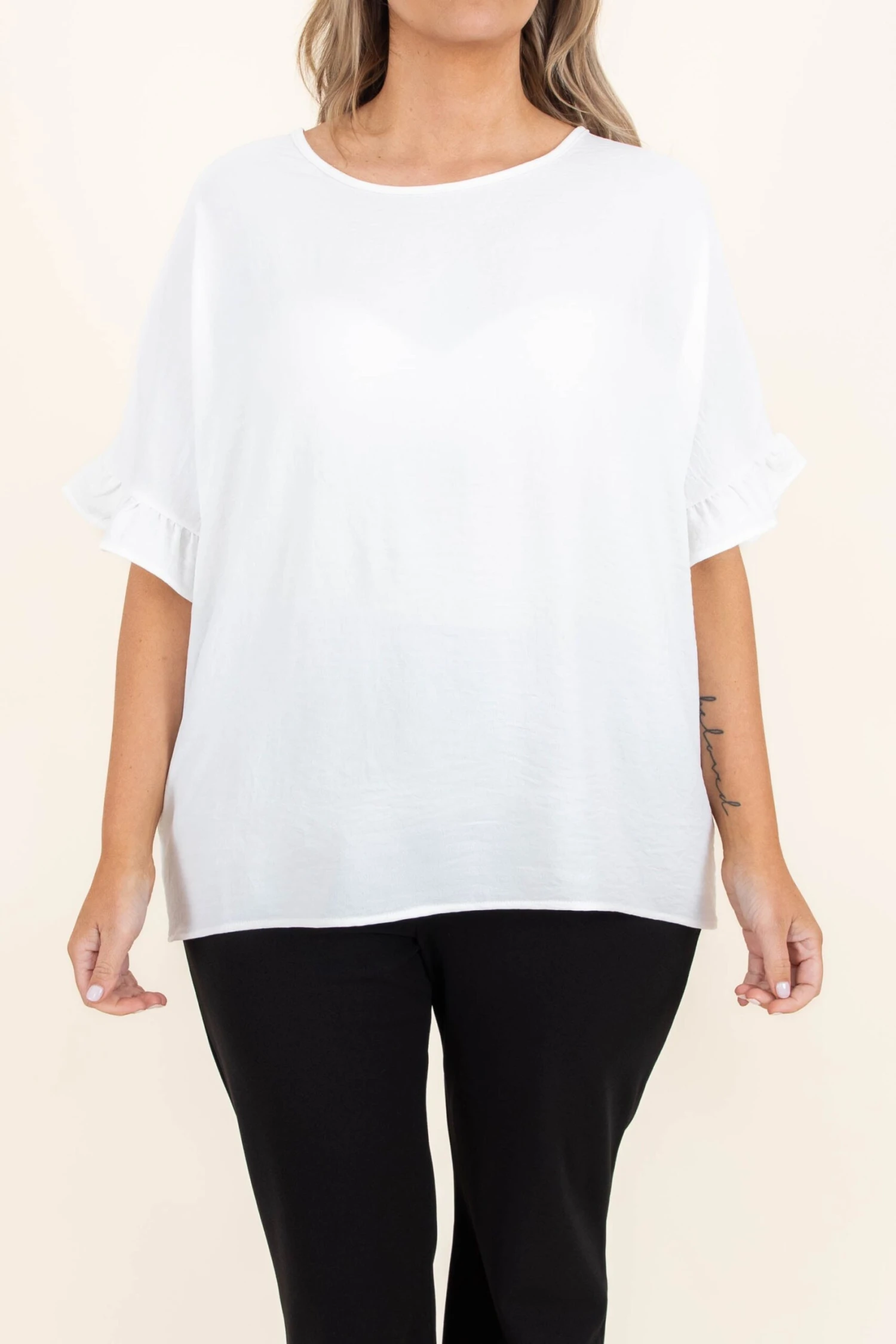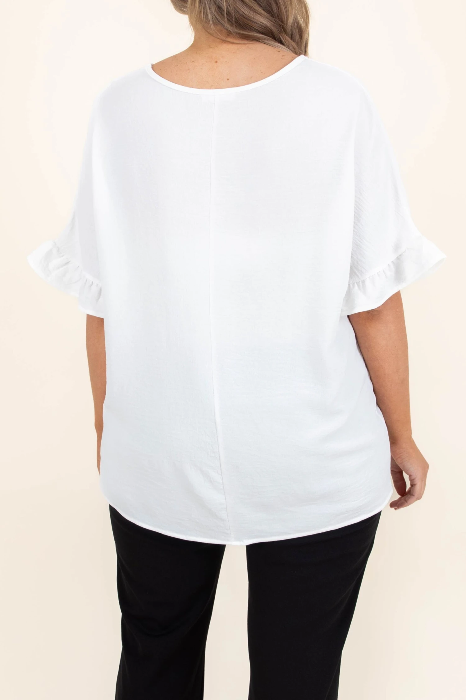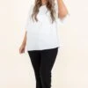We love this top! The ivory color is perfectly chic and the ruffles on the sleeves are so sweet! This cutie is perfect for pairing with jean shorts or skinnies for a look that is an instant classic!
