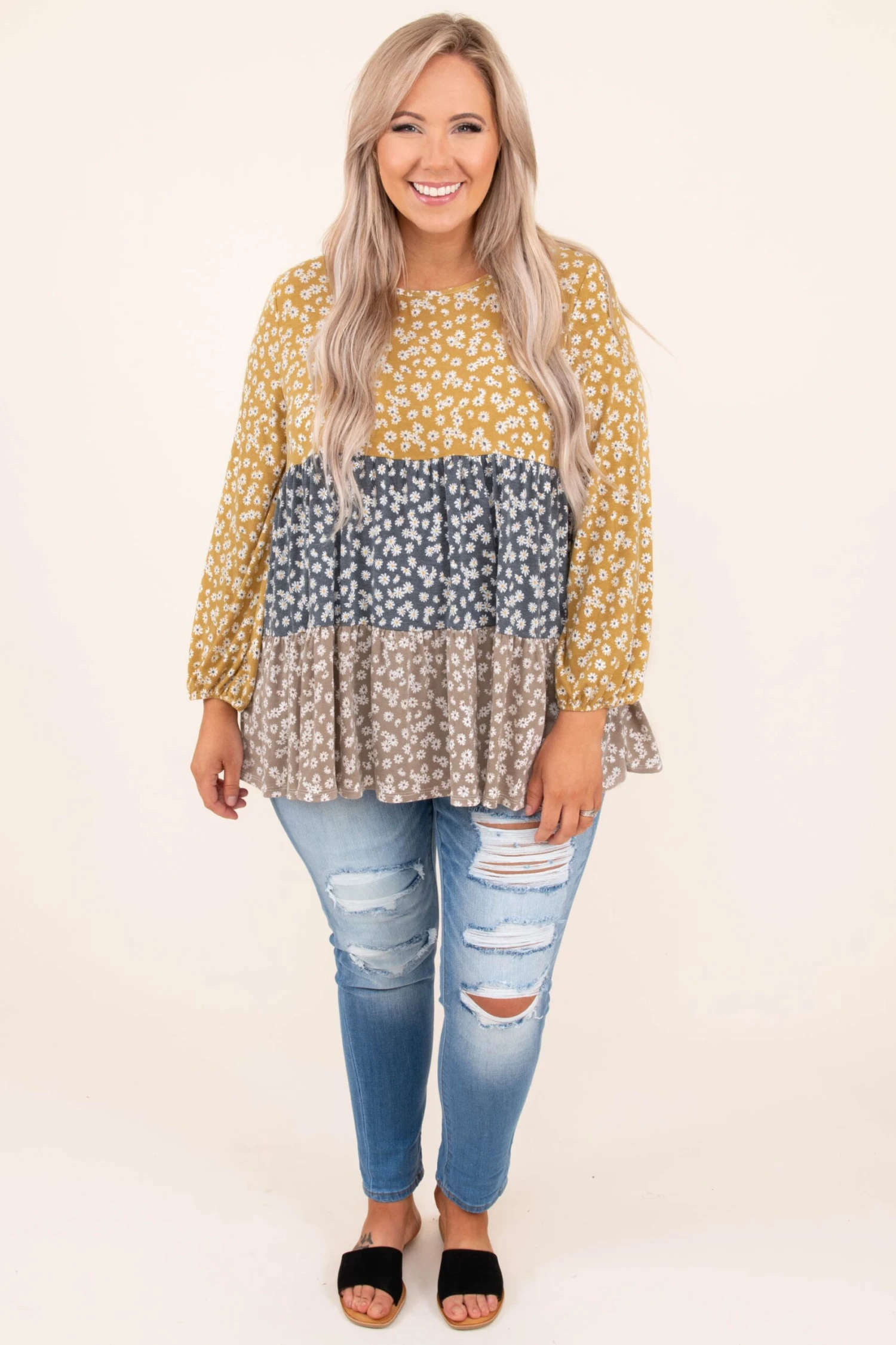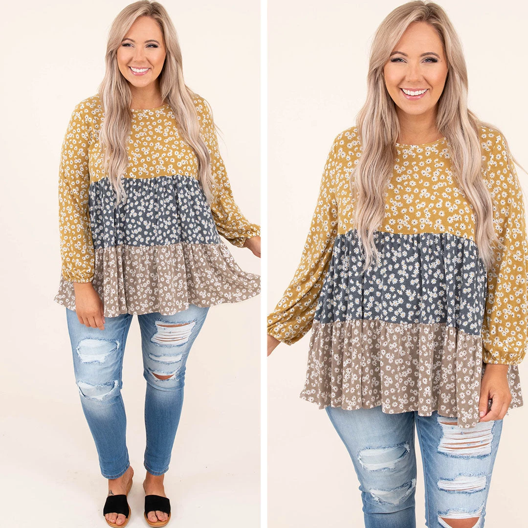 Follow the sun in this top! It features the cutest sleeves and color block design! It is comfortable for all-day wear, easy to dress up or down, and is so easy to style with everything in your closet! We know you will love it! Pair this oversized top with your favorite denim and sandals for a chic look!Â