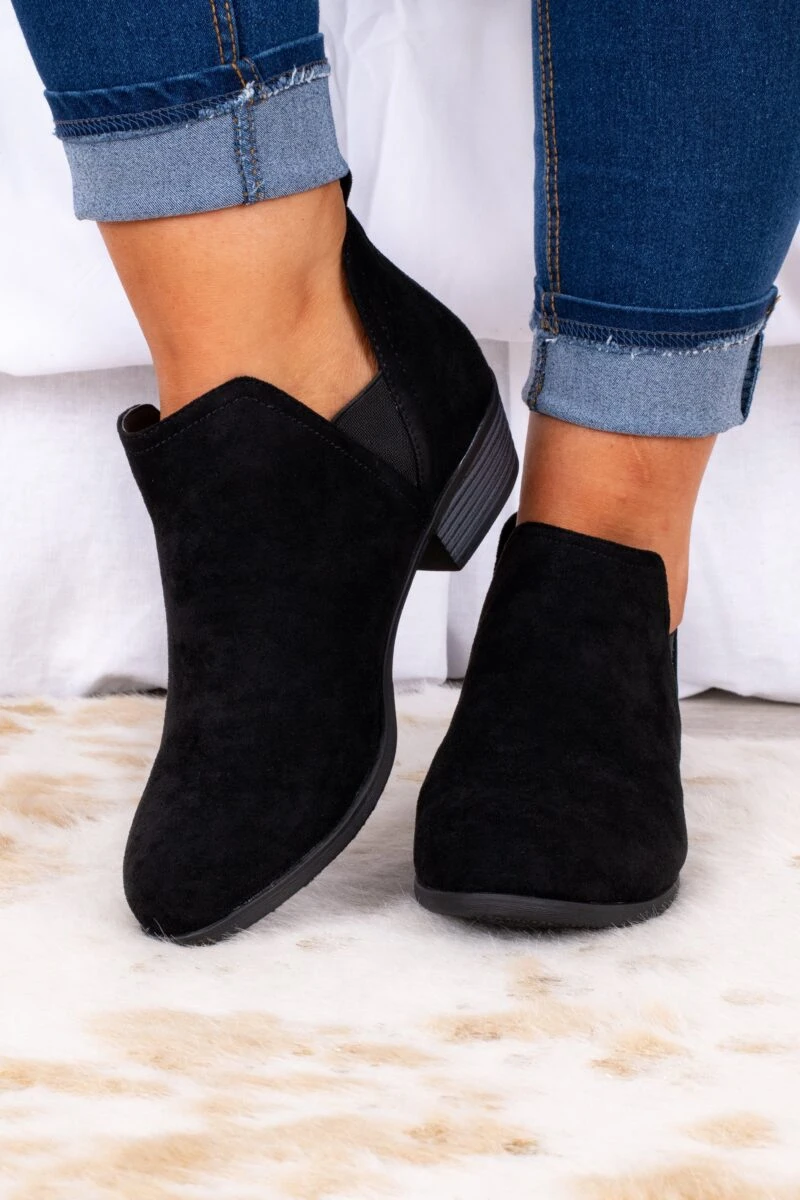 Walk through every door with confidence in these trendy booties! These booties have a solid neutral color you can pair with your favorite looks! They’re comfortable for all day wear, have a small block heel, and feature a slip-on design for the ultimate function! Pair these booties with your favorite flowy top and skinnies for an effortlessly chic look!Â