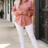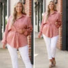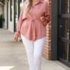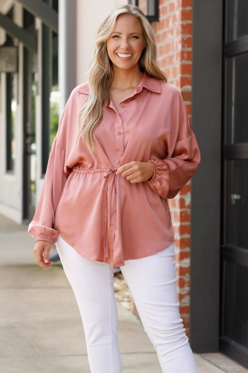 This blouse was made for the weekend! We love the gorgeous mauve color and sweet waist tie! The fabulous, flirty fit is perfect for pairing with all of your faves all season long! Style this blouse with white denim and wedges for a classy chic look!