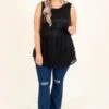 For what it’s worth, this top is definitely a must-have! The lovely lace design and beautiful black color easily pair well with all your favorite pants or skirts! Simply style this top with some distressed jeans and booties for a chic, everyday look!