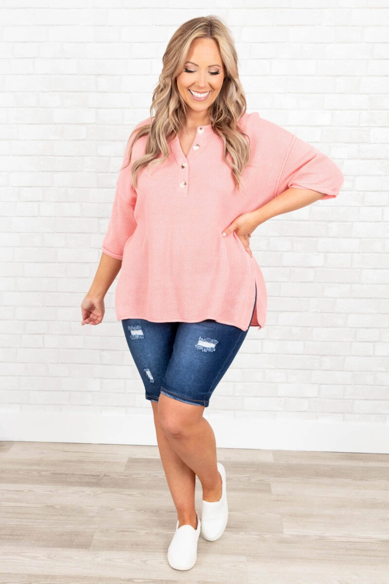 The love you’ll have for this sweater will last forever! The pretty pink color and knitted design is so sweet! The flowy flattering fit is perfect for the season! Style this sweater with some shorts or skinnies for an everyday chic look!