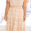 You will always look classy in this dress! This cutie has a super trendy midi length and high neck collar that will have you in style! The ruffle sleeves and tiered style are so flattering! Style this with some heels for a perfect look at your next event!Â