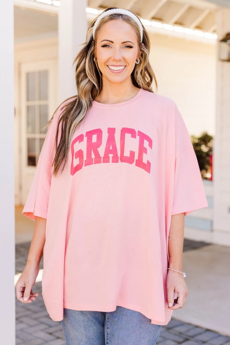 This boyfriend tee will elevate your casual wardrobe with its lovely dark pink color! The oversized fit offers comfort and style, while the adorable graphic adds a touch of playfulness! Perfect for any occasion, this tee is a must-have for any fashion forward individual!