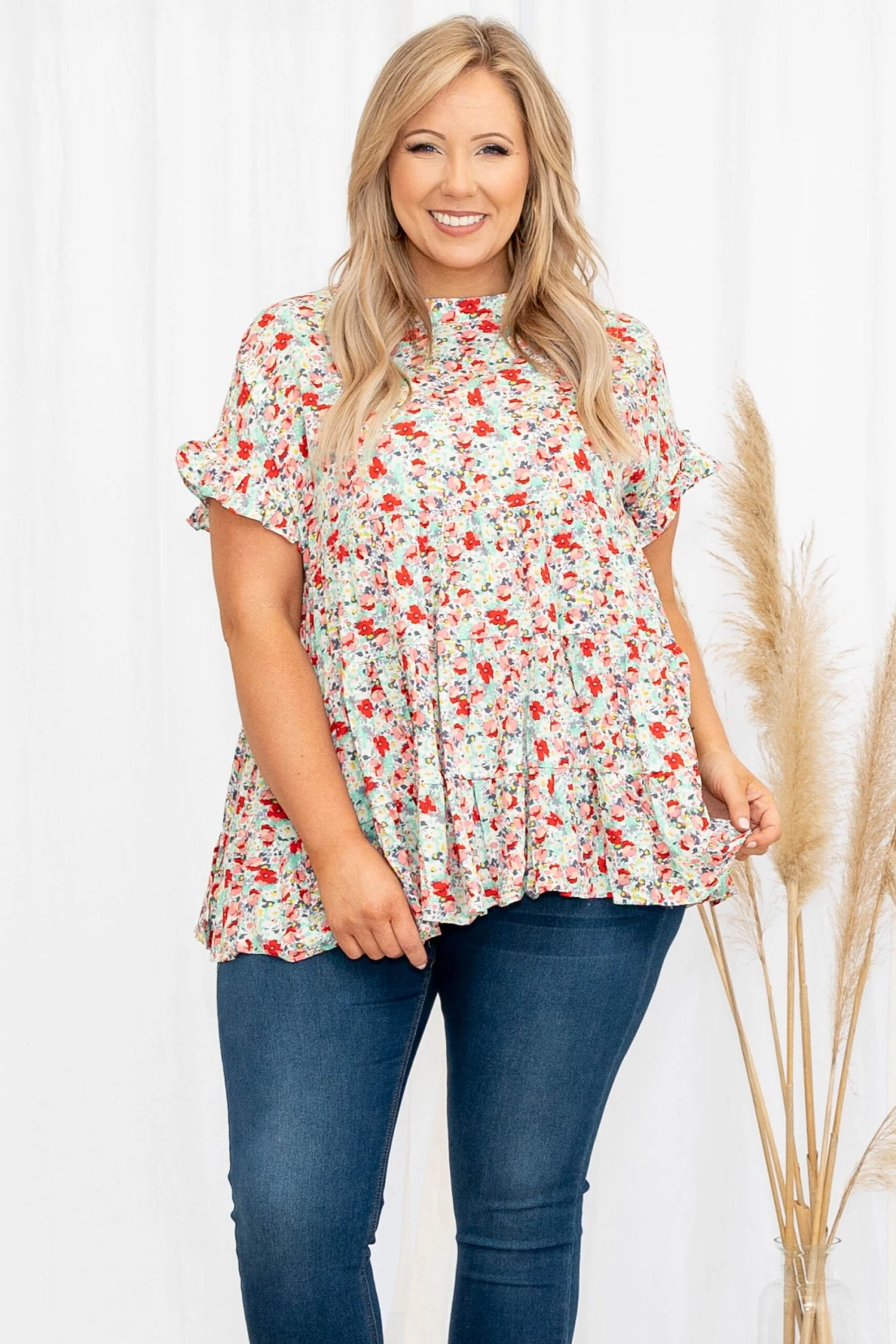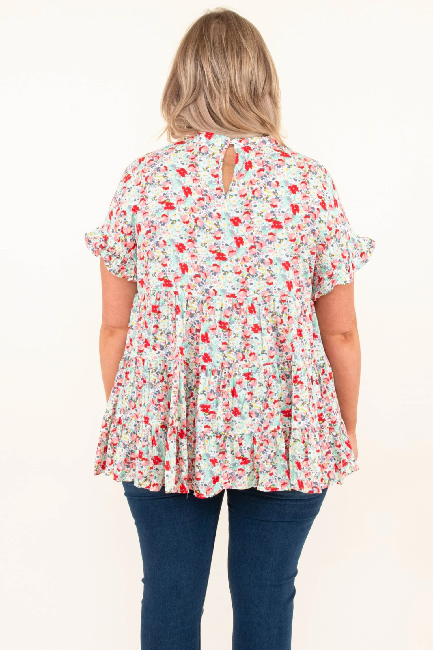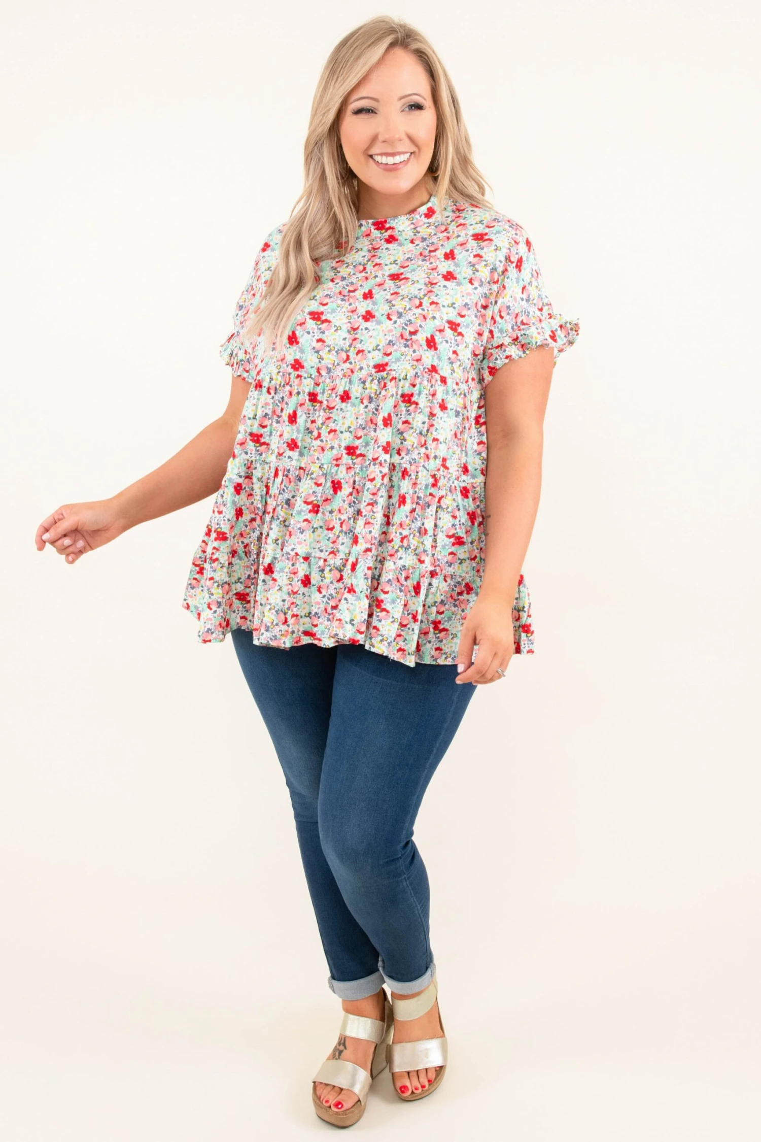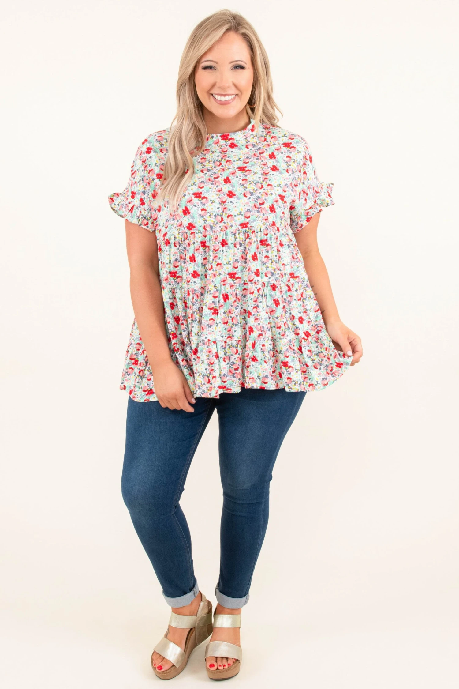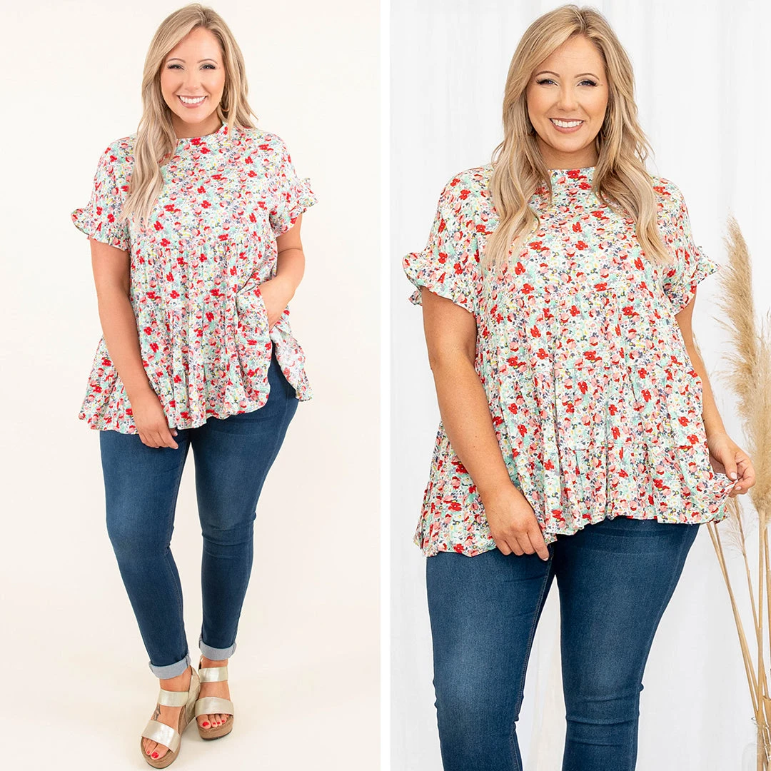 We are full on love from this top! This babydoll top is so flattering on everyone and the floral design is bound to wow! Pair this with your fave skinnies, wedges, and accessories for a fun look!