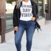 It’s almost game time! This chic tee has a simple graphic print with just the right colors for the season! It’s comfortable for all-day wear, has a classic t-shirt fit to flatter your figure, and can even be styled with your favorite game-day accessories! Simply pair this tee with shorts and sandals for an effortlessly trendy look this season!