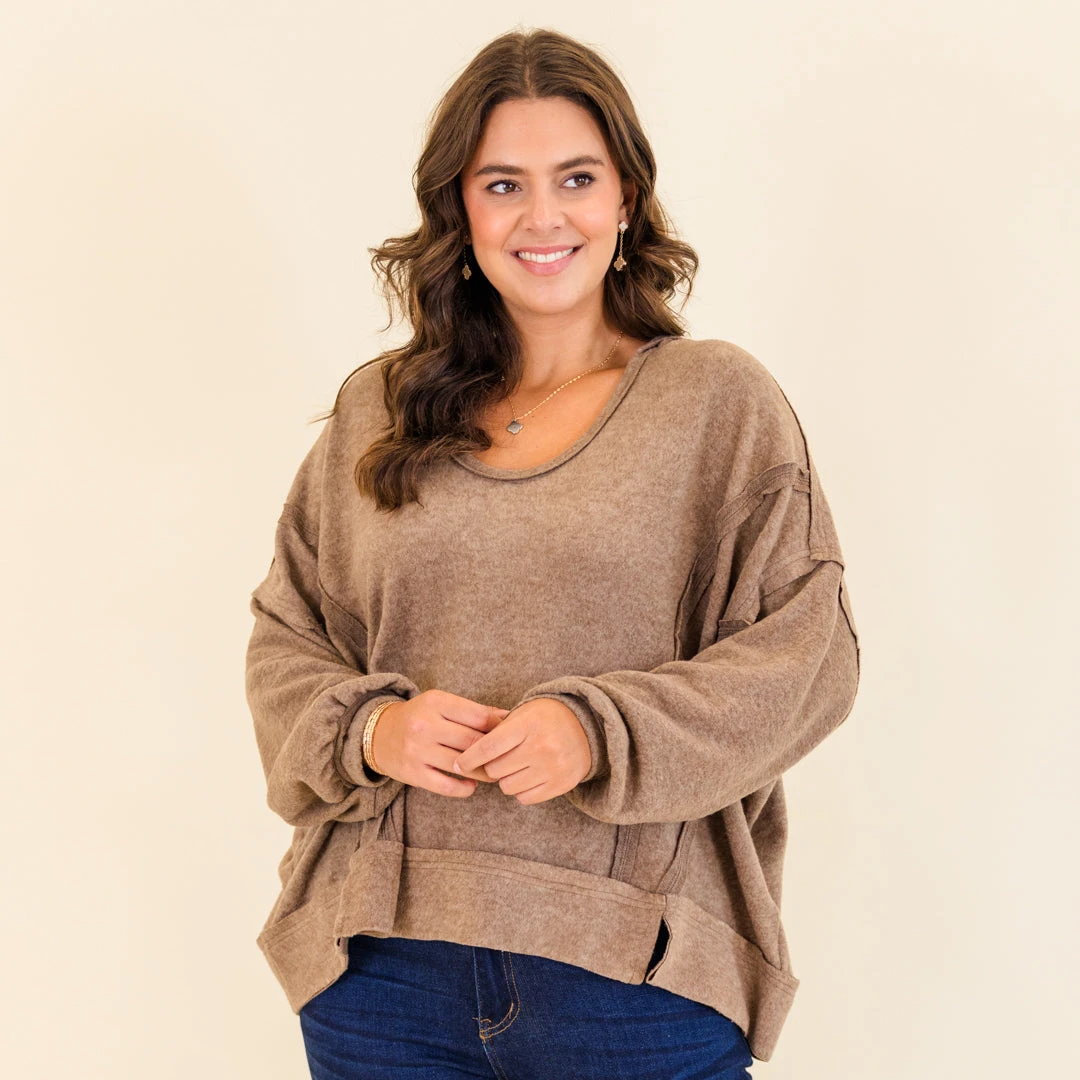 Get ready to get cozy and comfortable with this fabulous hoodie! Featuring stylish bubble sleeves and a soft, inviting texture, this mocha hoodie is perfect for all your cool weather needs! The exposed seems are super trendy! Stay cozy and fashionable with this must-have piece!