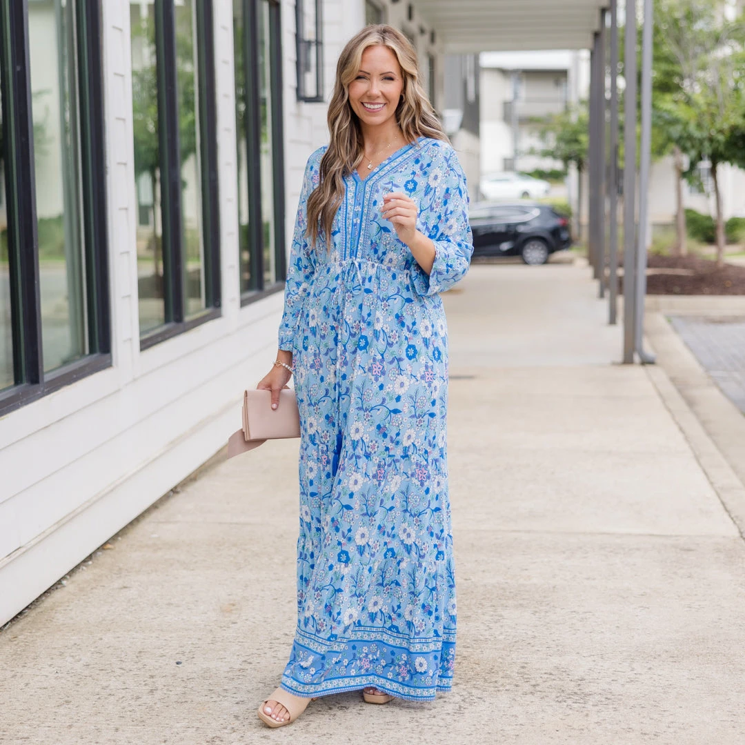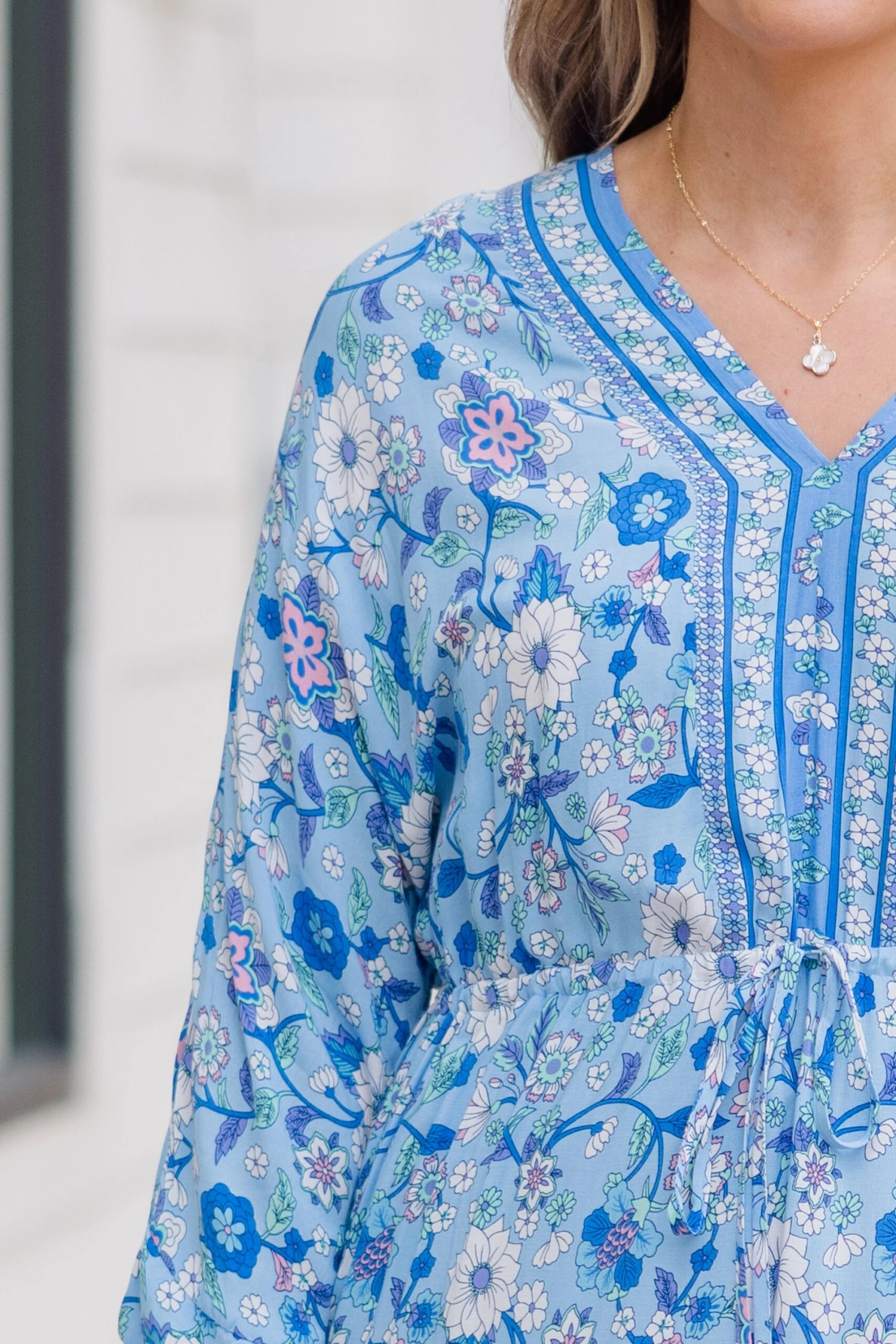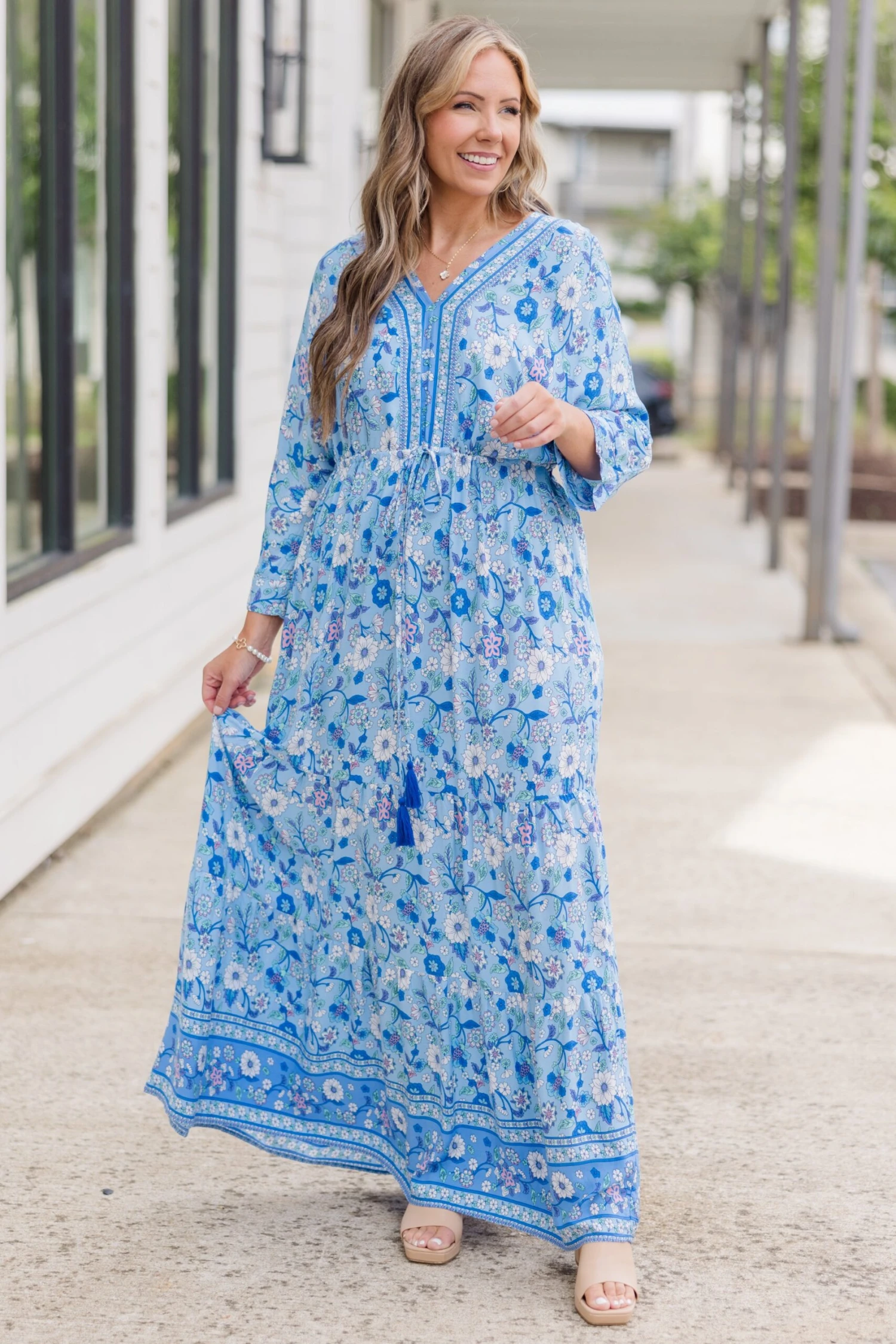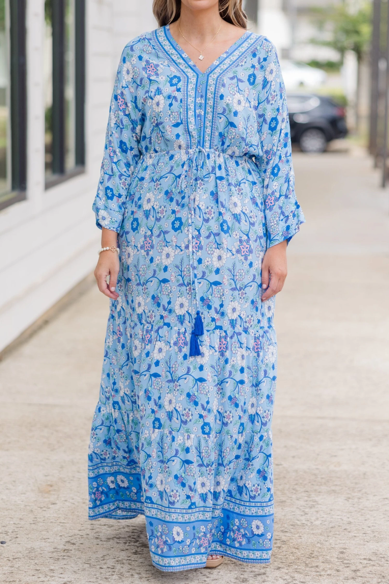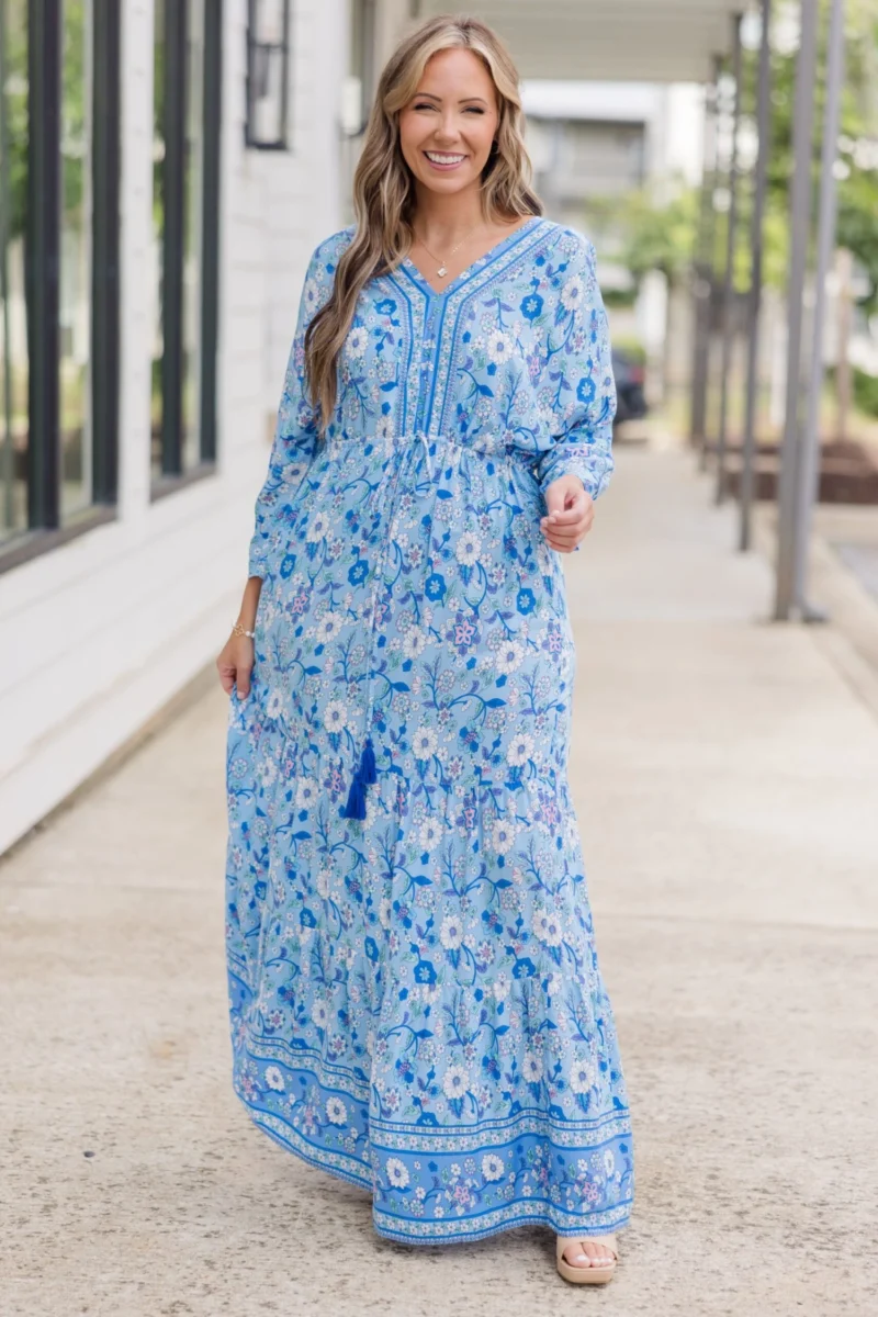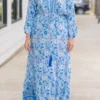Grab this blue beauty for your next out of town adventure! It features a lovely maxi length and the tassel ties add a touch of sass and versatility to this must-have piece! Stay stylish and comfortable while enjoying your vacation!