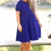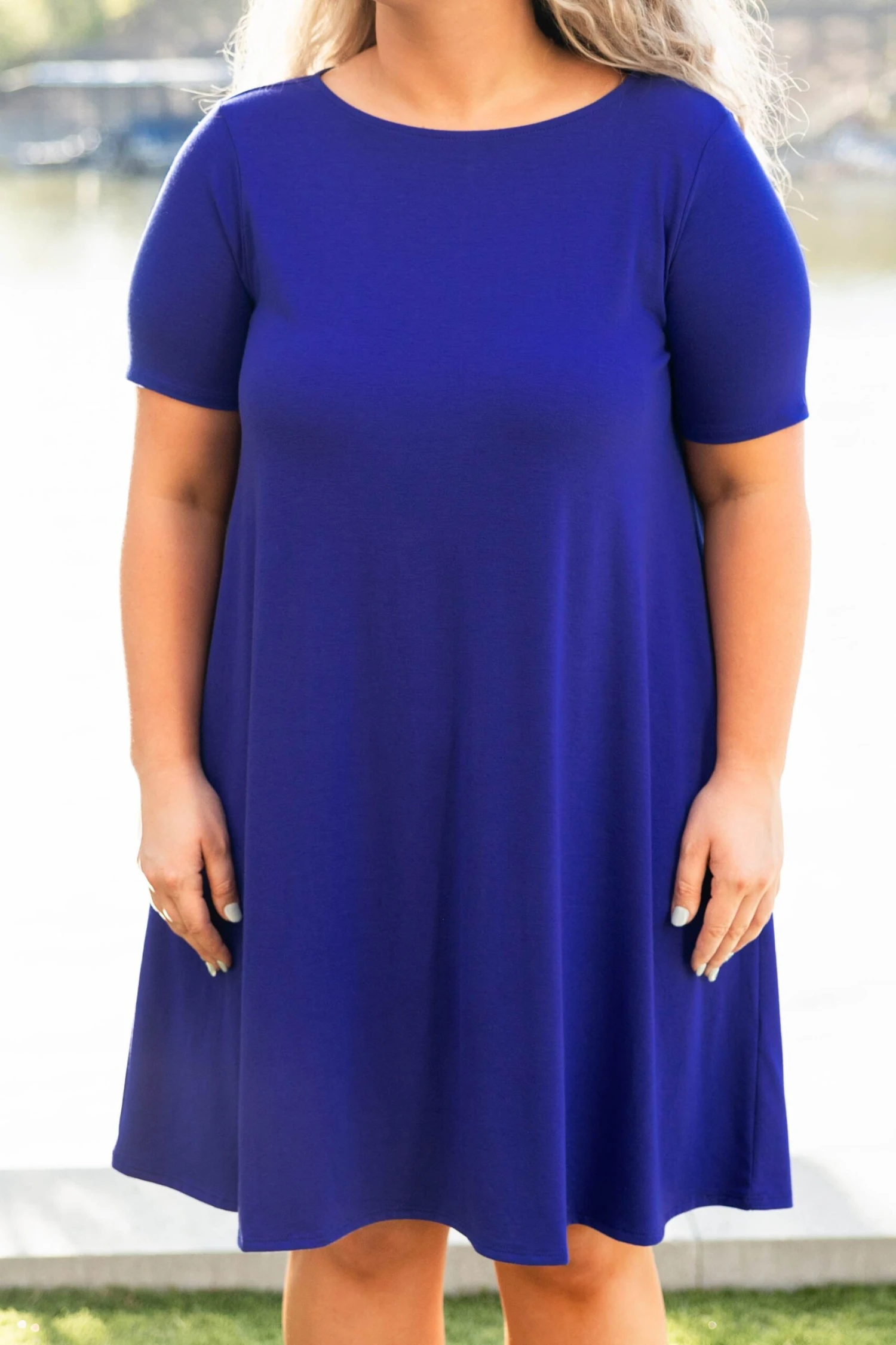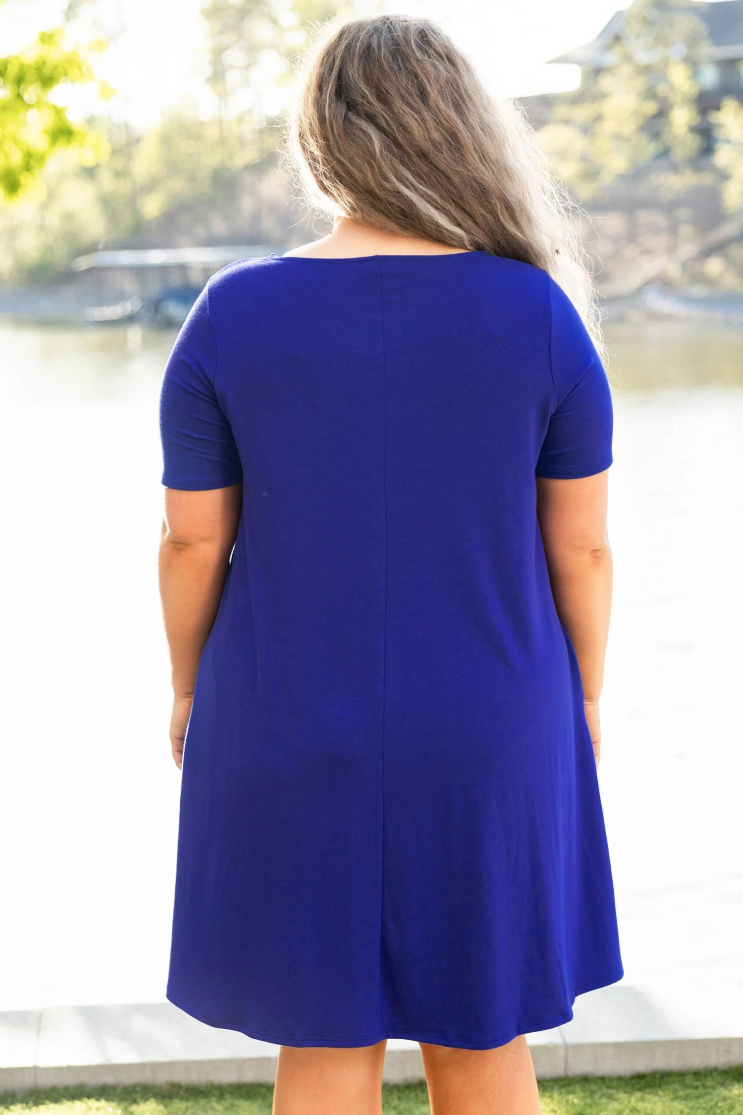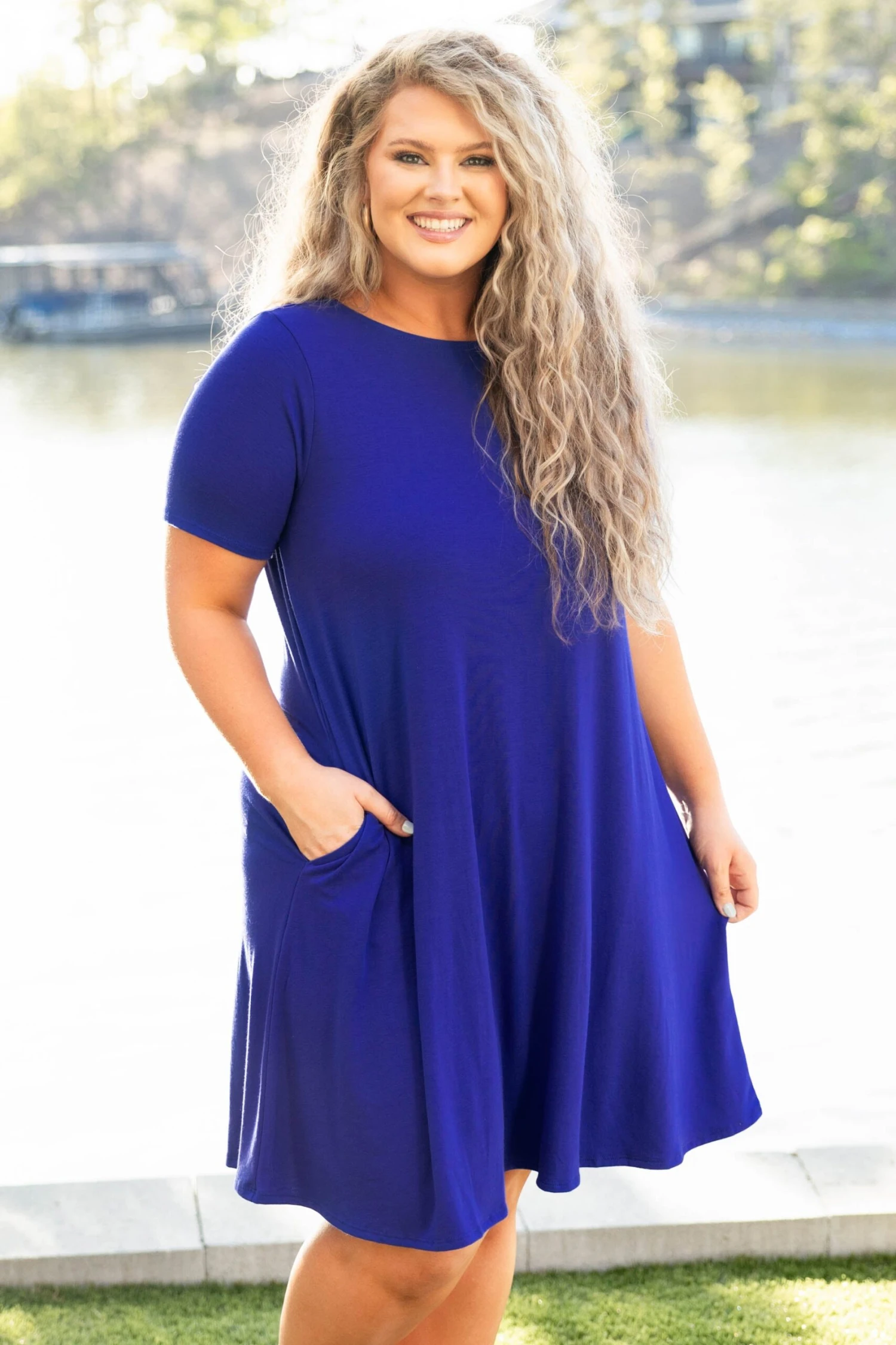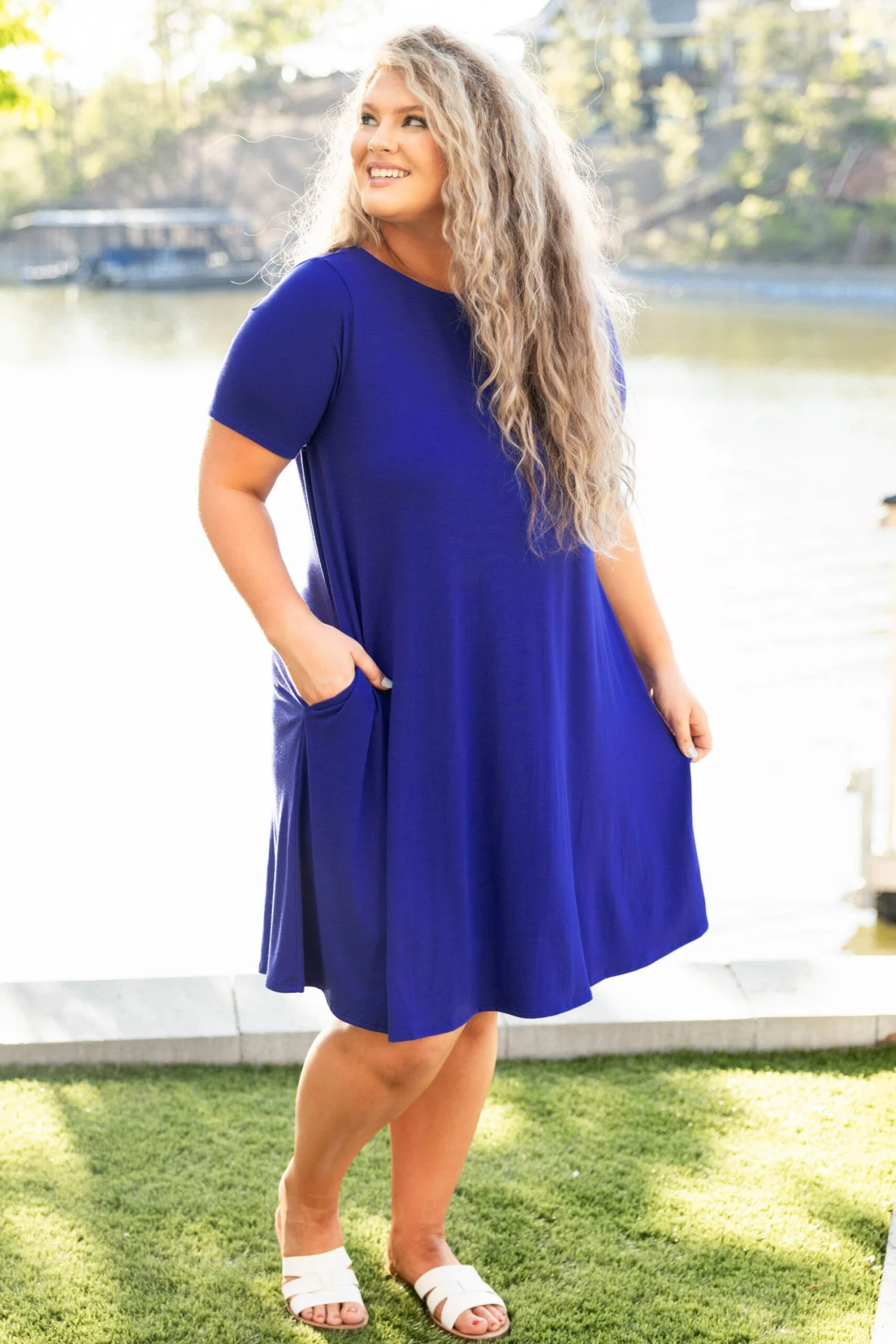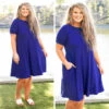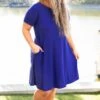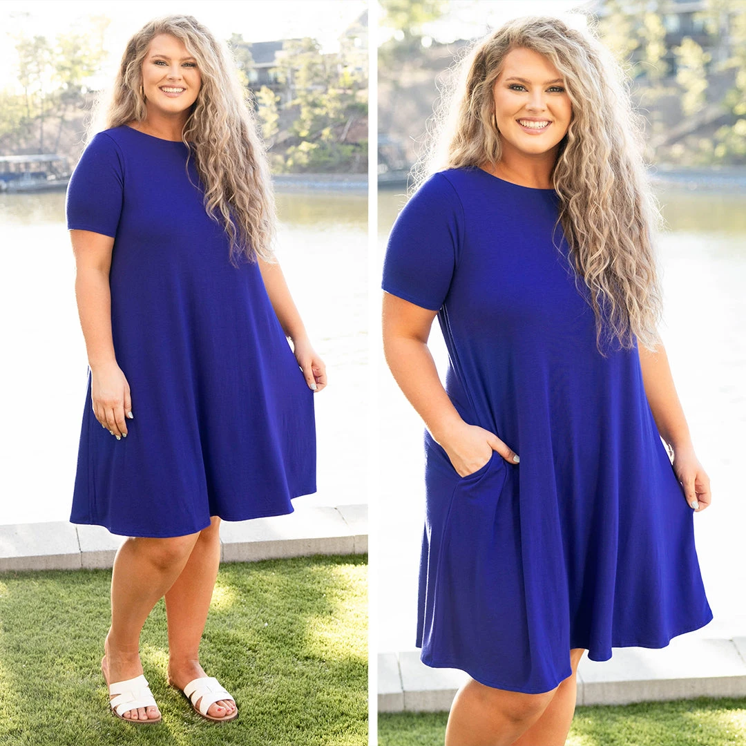 Let this dress inspire your style all season long! The bright blue color is bold and fun and the basic flowy style is so classic! The material is super soft, has pockets, and enough stretch to keep you in comfort all day! Style this with some sandals for the perfect look!Â