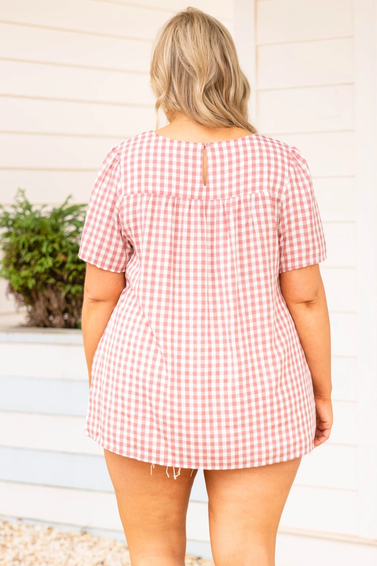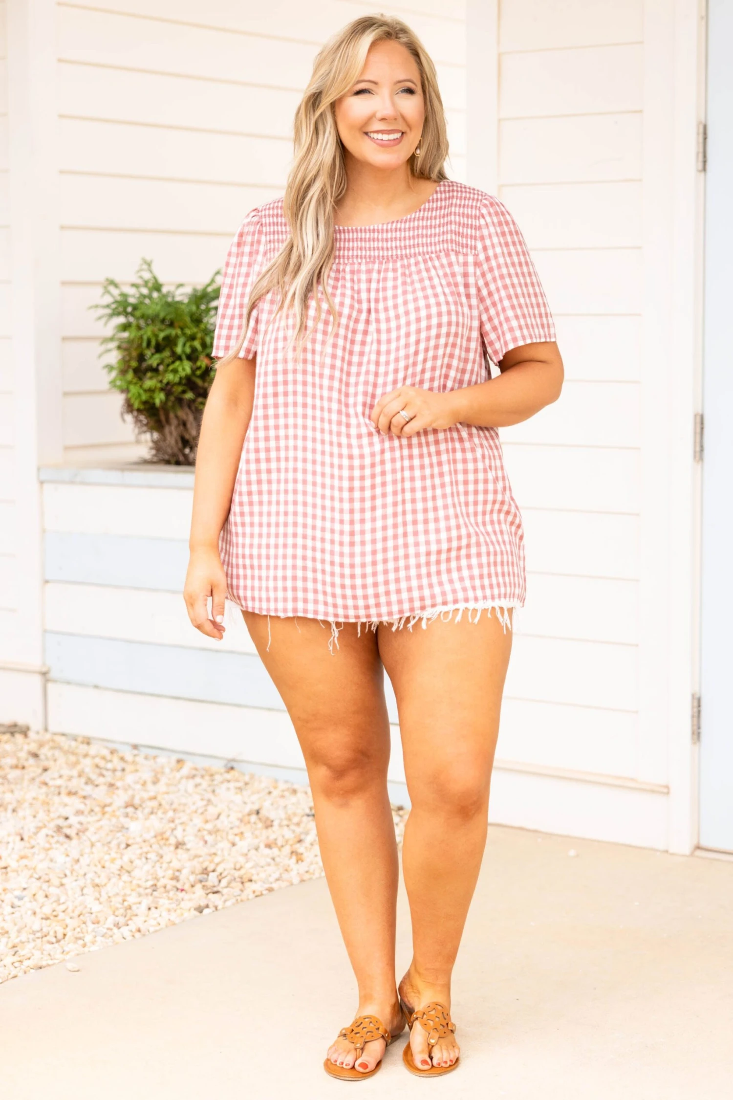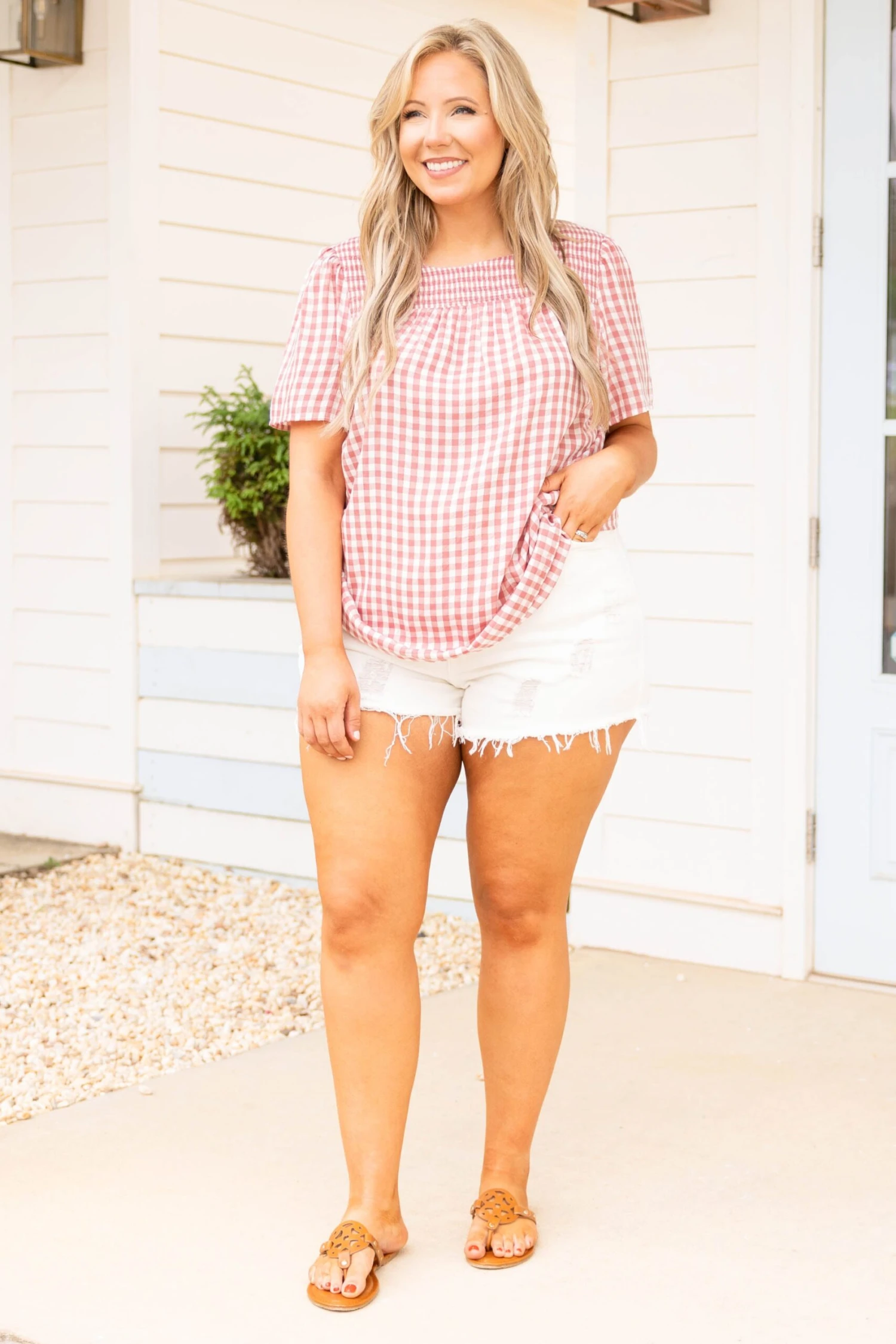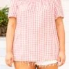 This gingham top is a MUST in your wardrobe! This top has a classic pattern with neutral colors you can style for every occasion! It’s comfortable for all-day wear, has a flowy fit, and features the cutest neckline! Pair this top with skinnies or shorts for an effortlessly chic look!Â