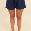Discover a new attitude in these FAB shorts! Offering an elastic waistband for the perfect fit! This classic navy color is neutral and pairs well with any of your favorite tops! The flirty length make them perfect for any occasion!