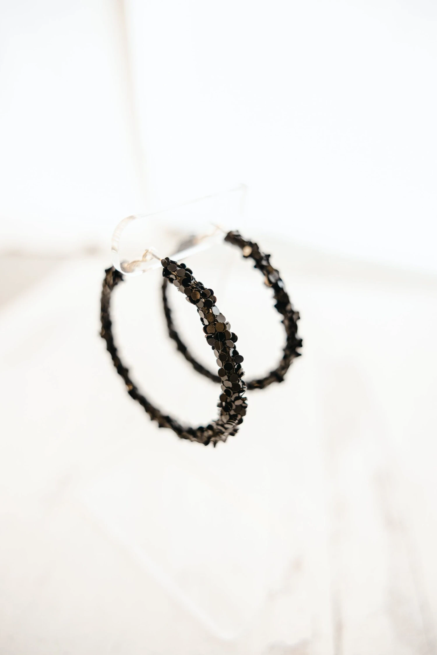 We love these earrings! They are the perfect addition to any outfit, especially all of your warm-weather clothing! The fun, sequin beading, and chic black color is sure to stun! Pair these with a cute top or dress for an easy, everyday look!
