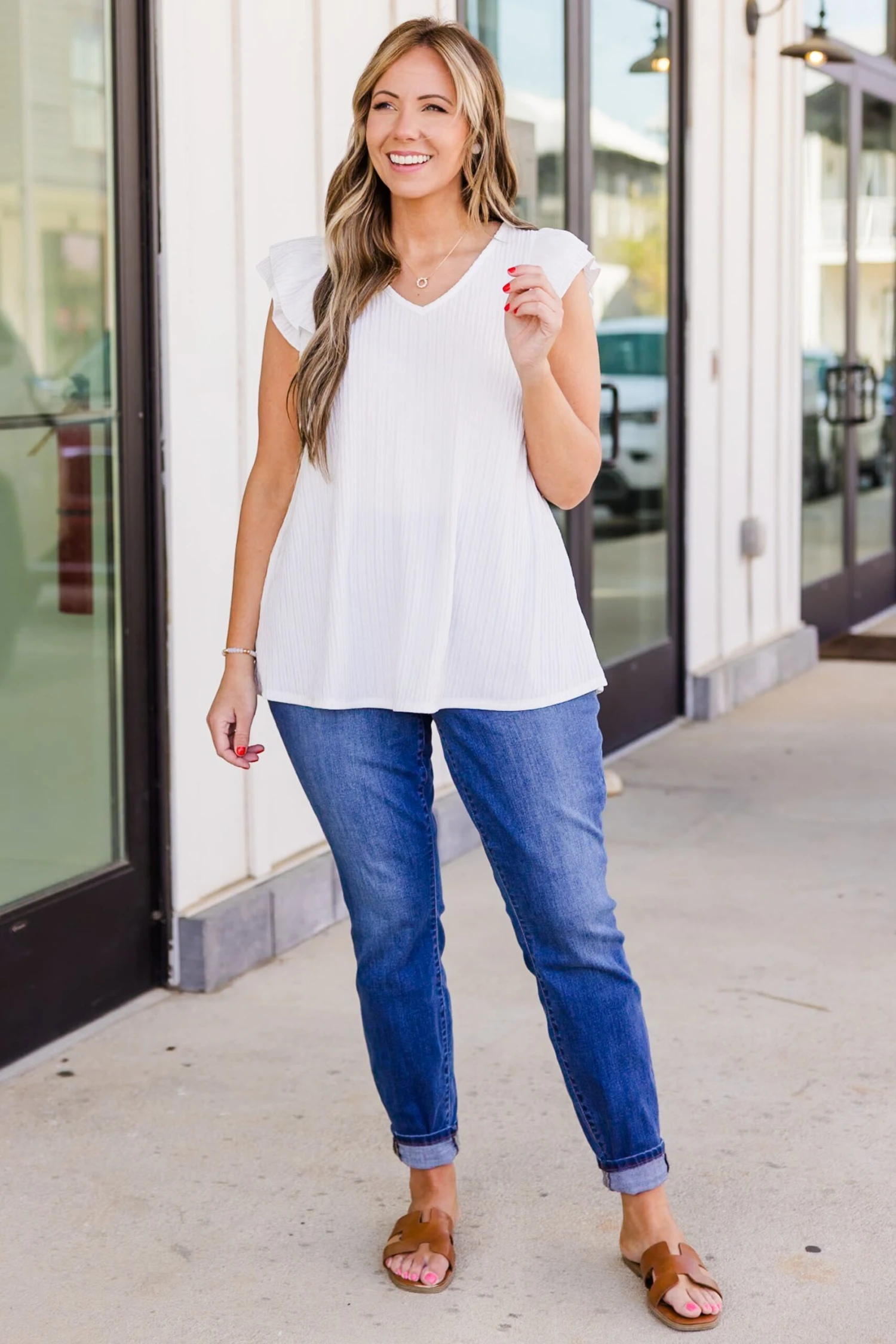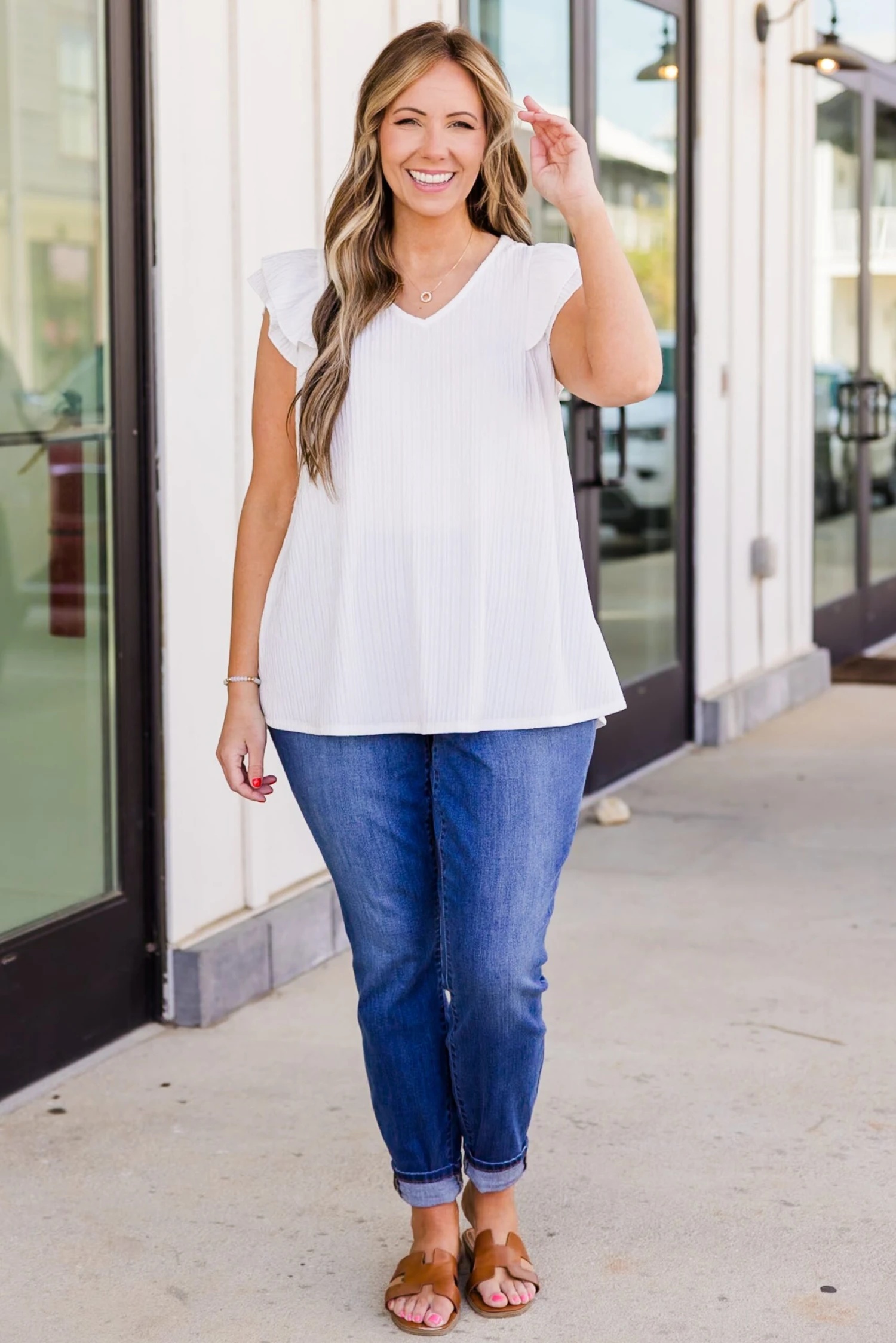 Enjoy a glorious night in this cutie! This top offers a timeless look with its flutter sleeves and classic ivory color! Crafted from a comfortable and textured material, it’s perfect for any occasion! Elevate your style with this must-have wardrobe staple!