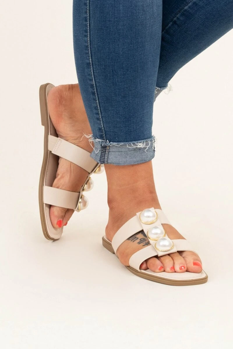 Show your natural glow in these adorable sandals! These sandals have a soft natural color that pairs easily with all your favorite outfits! The pearls along the top add a touch of elegance to an already perfect sandal! Style these with some skinnies and a cute top for a classic, trendy look!