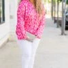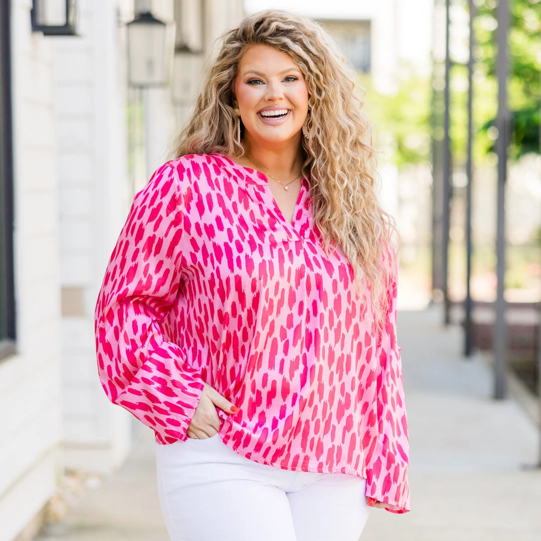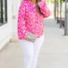 Let your fashion sense glow this season with this beauty! This bold and classy top features a stunning leopard pattern in a sleek, bright pink color! So strut your stuff and stand out with this eye-catching and stylish piece!