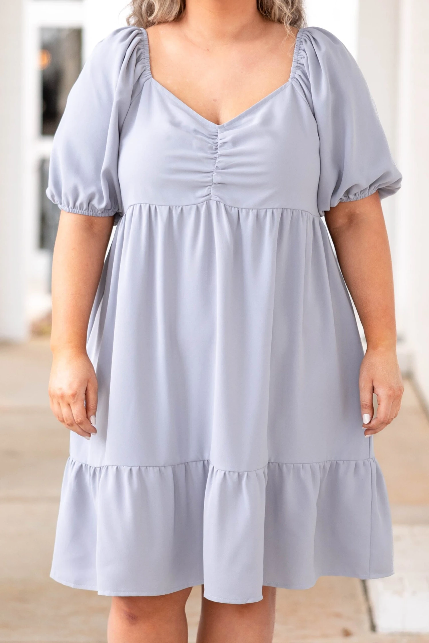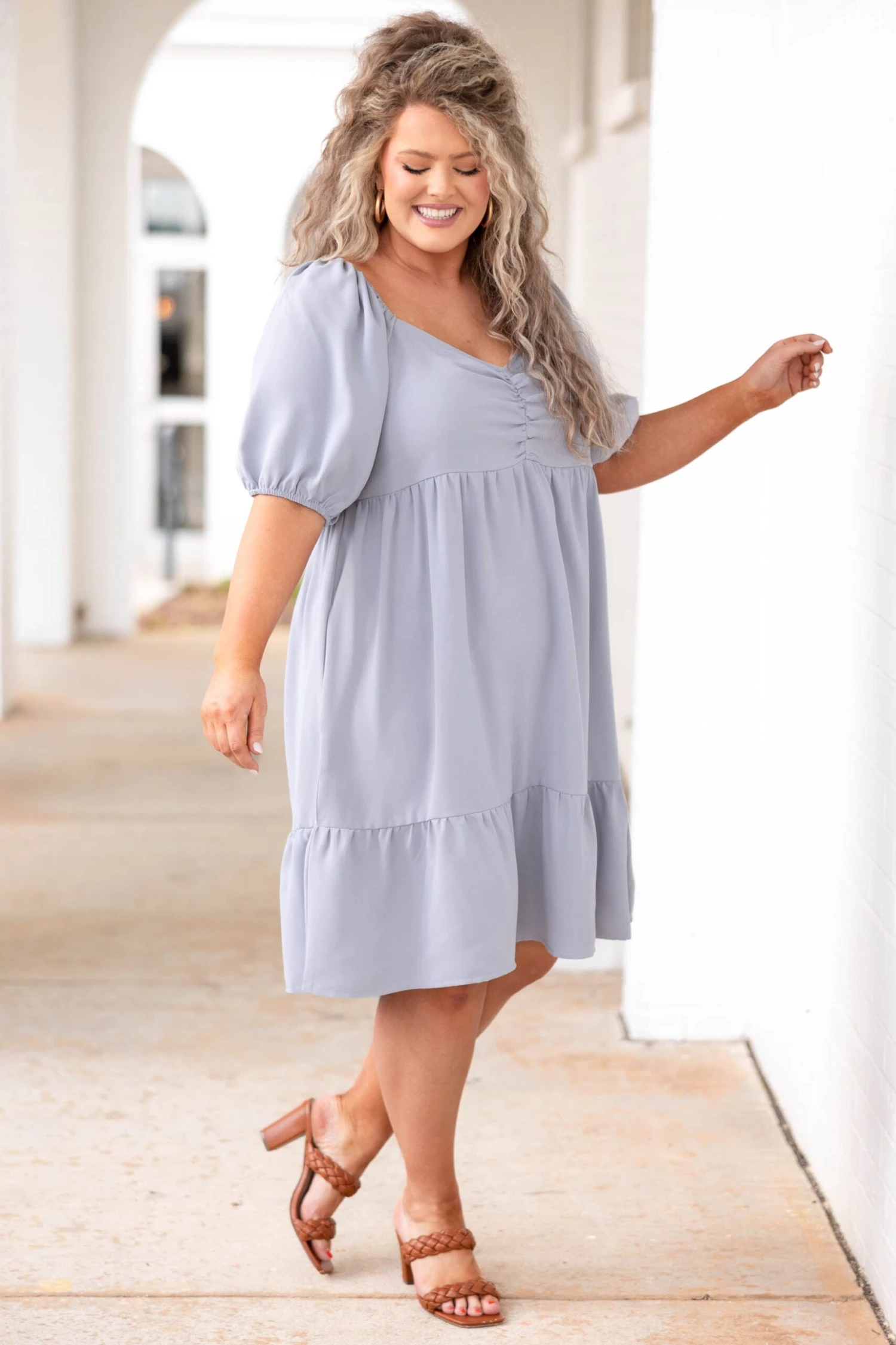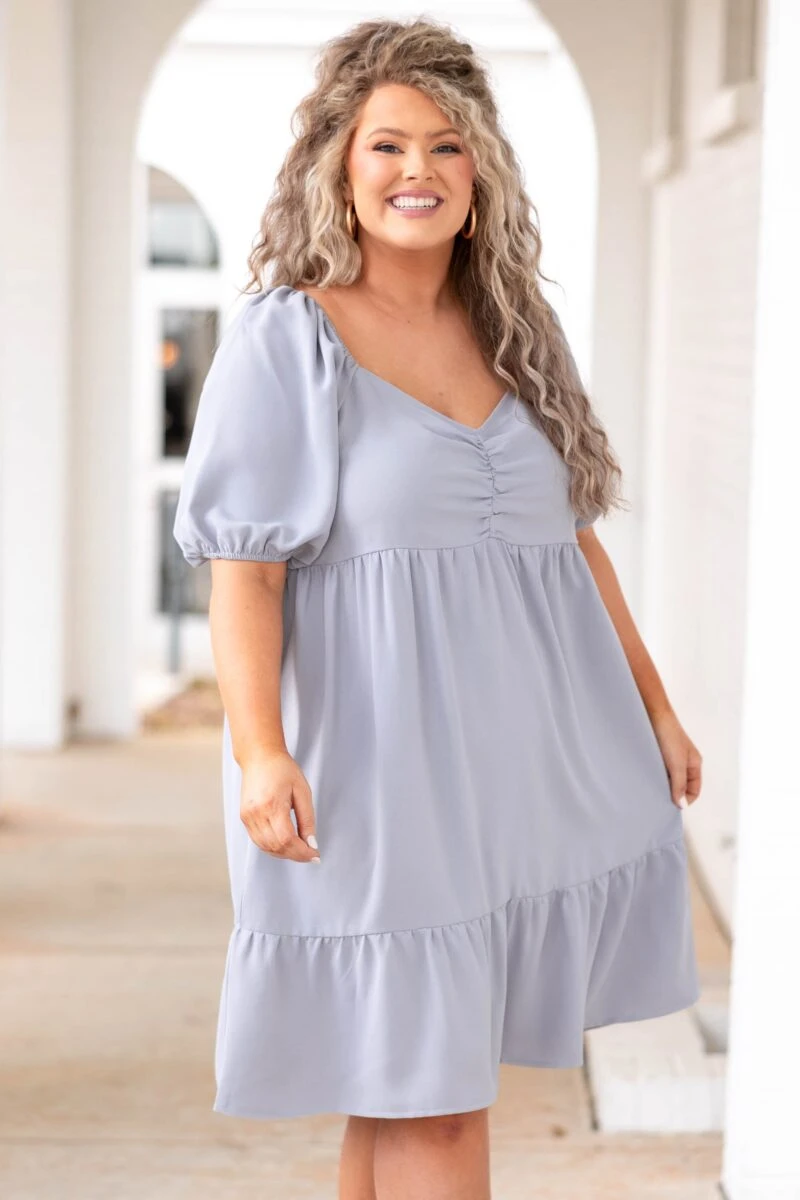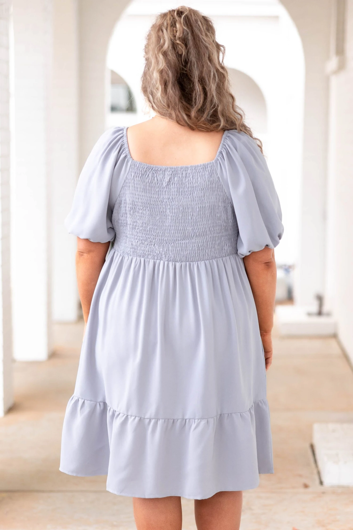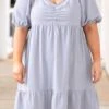 You’ll be glowing in this beautiful dress! This dress has a soft blue color with a babydoll style great for every occasion! Who doesn’t love a dress with POCKETS?! The flowy fit will flatter your figure in the best way! Simply style this dress with heels and a statement necklace for an effortlessly, chic look!Â