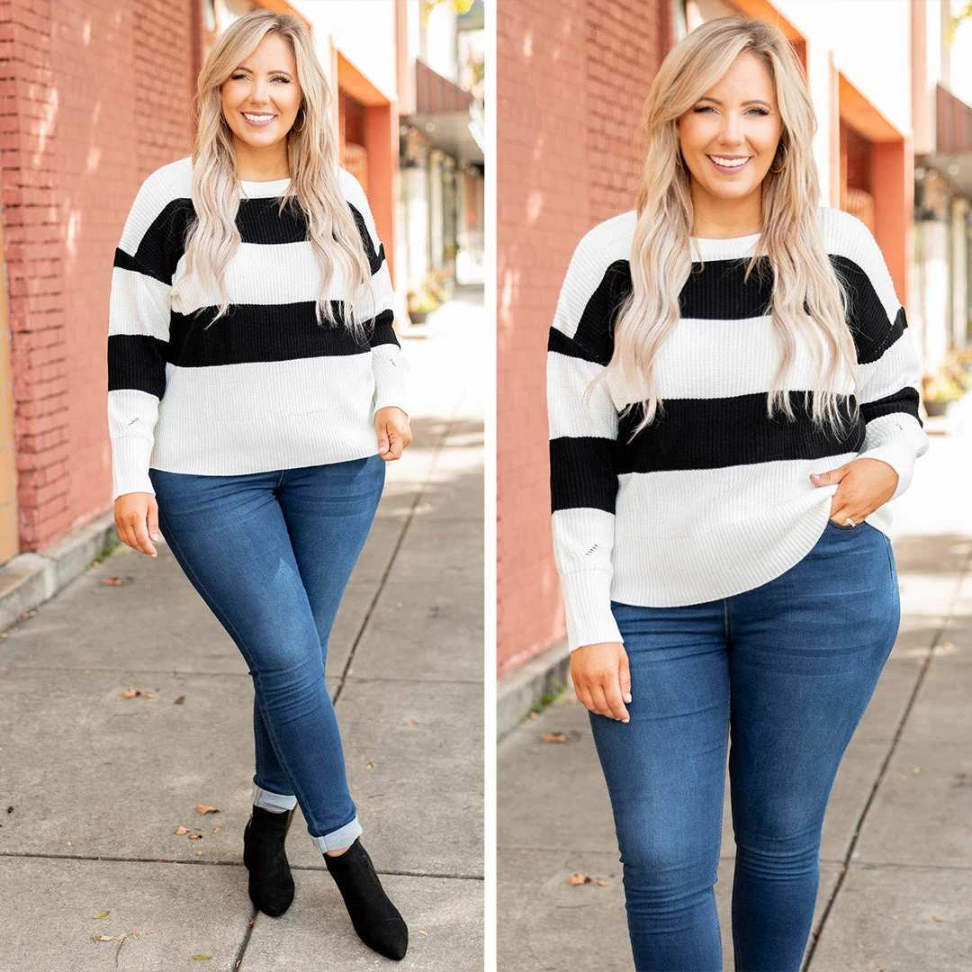 You’ll be glowing in this chic sweater! This sweater has a bold colorblock pattern with neutral colors you can style for every occasion! The soft fabric will keep you warm and cozy all day long, while the cropped fit will flatter your figure in the best way! Simply, style this sweater with skinnies and booties for an effortlessly chic look!Â