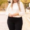 We are going wild for this amazing top! This cutie has floral, solid, and paisley pattern that is so chic! There is a gold dot pattern on the solid blush parts and did we mention how adorable the ruffle sleeves are? Style this cutie with an amazing pair of jeans and some great sandals to look so stylish!
