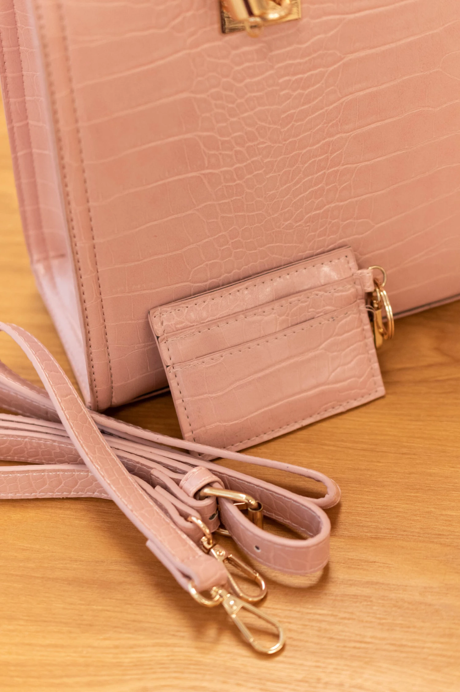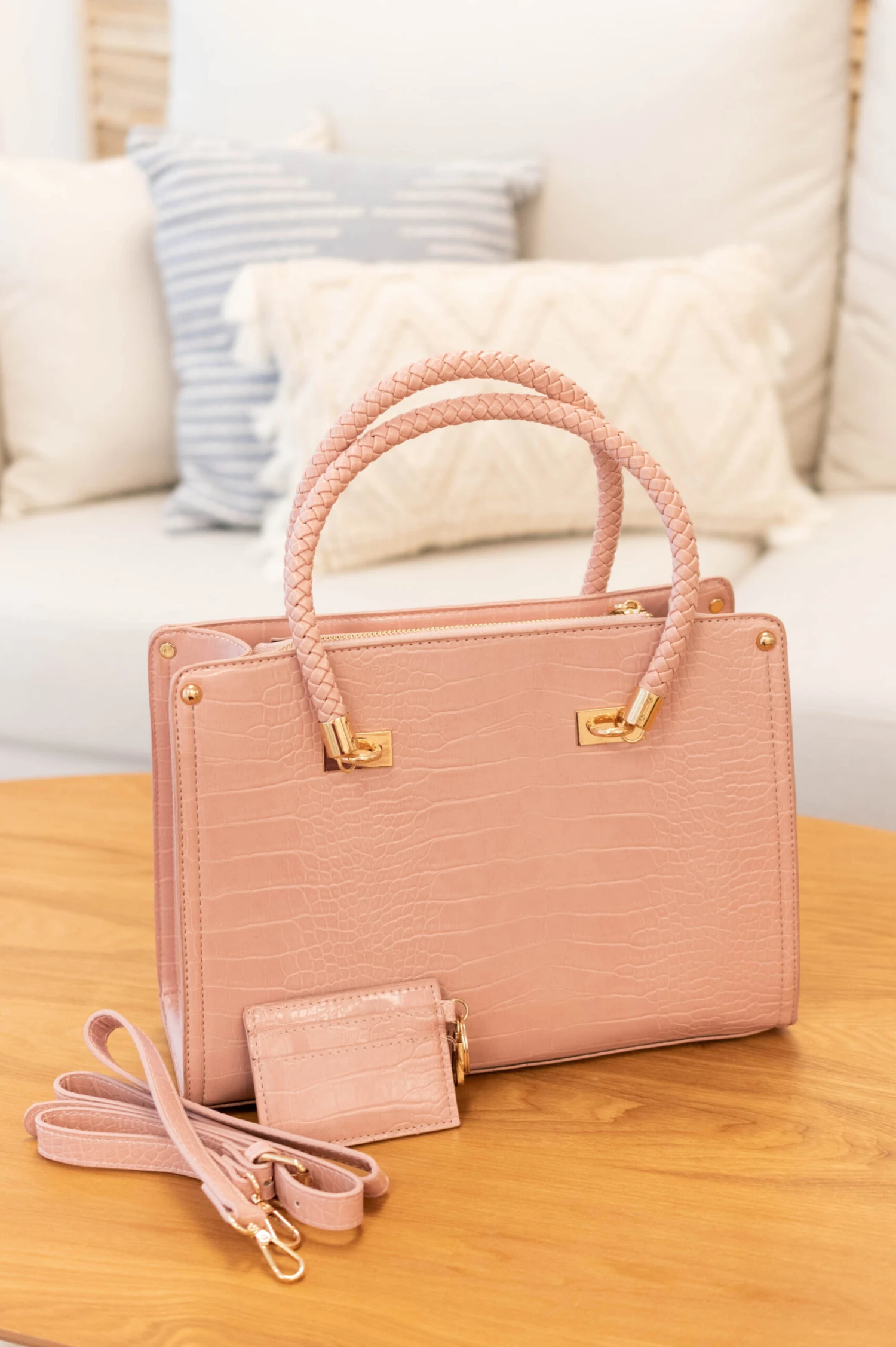 This purse will definitely go along with everything in your wardrobe! It has a pretty pink color with a super trendy textured pattern that is so sweet! The braided style straps and detachable card holder is perfect for all of your necessities! This purse is truly a must-have you don’t want to miss out on!