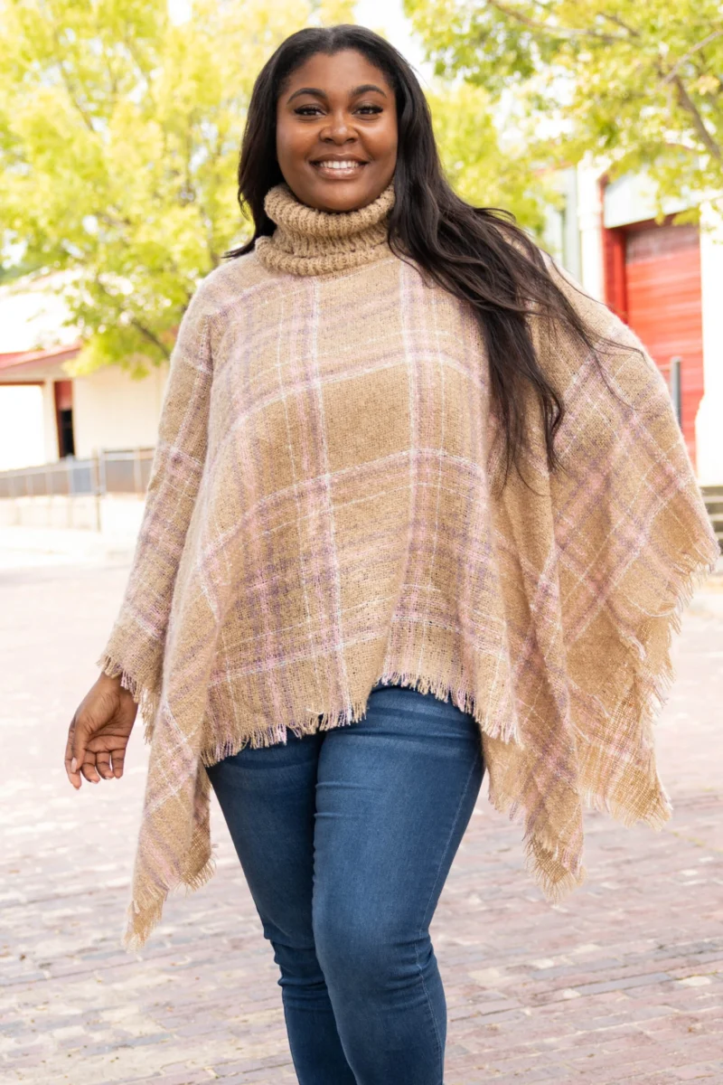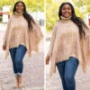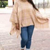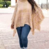 If you’re going for gorgeous, then this is the top for you! This beautiful poncho has a soft neutral color that pairs well with all of your outfits this season! The high neckline and distressed hemline is SO chic! Style this poncho as a layering piece all season long for an effortlessly, trendy look!Â