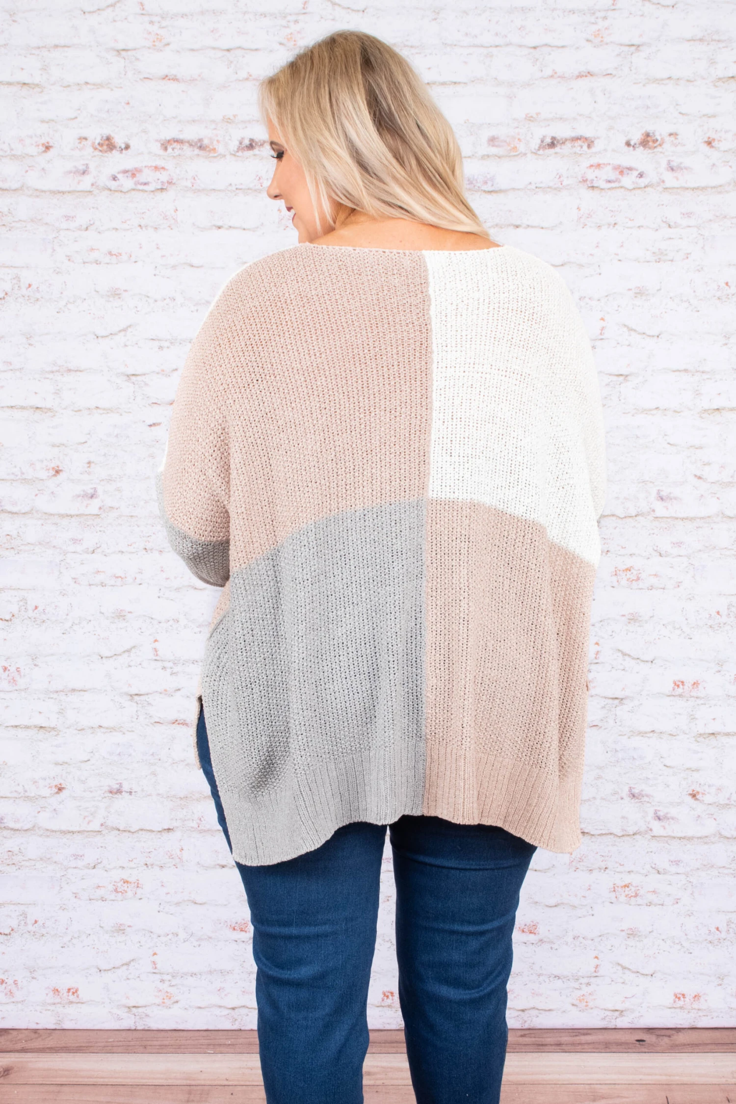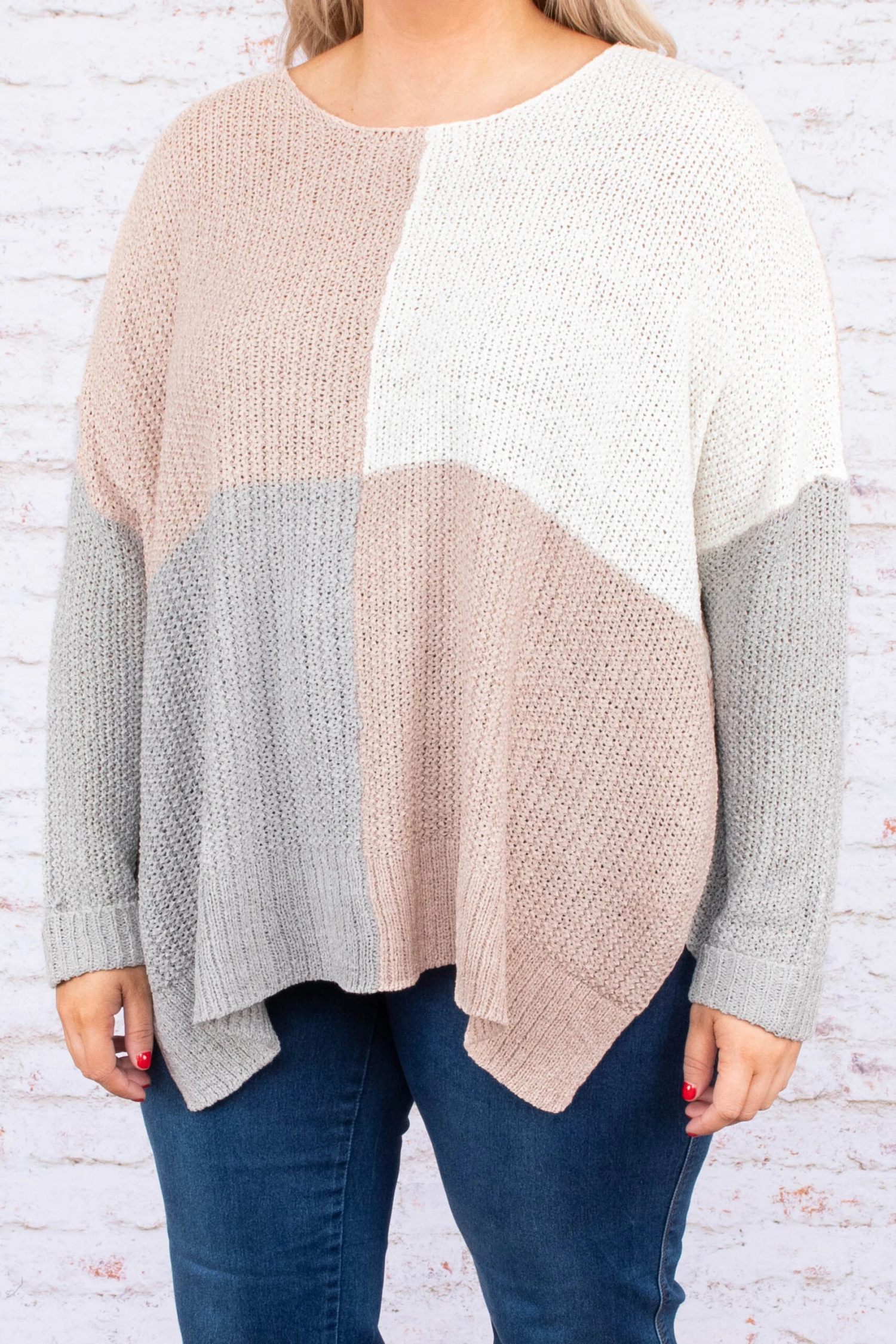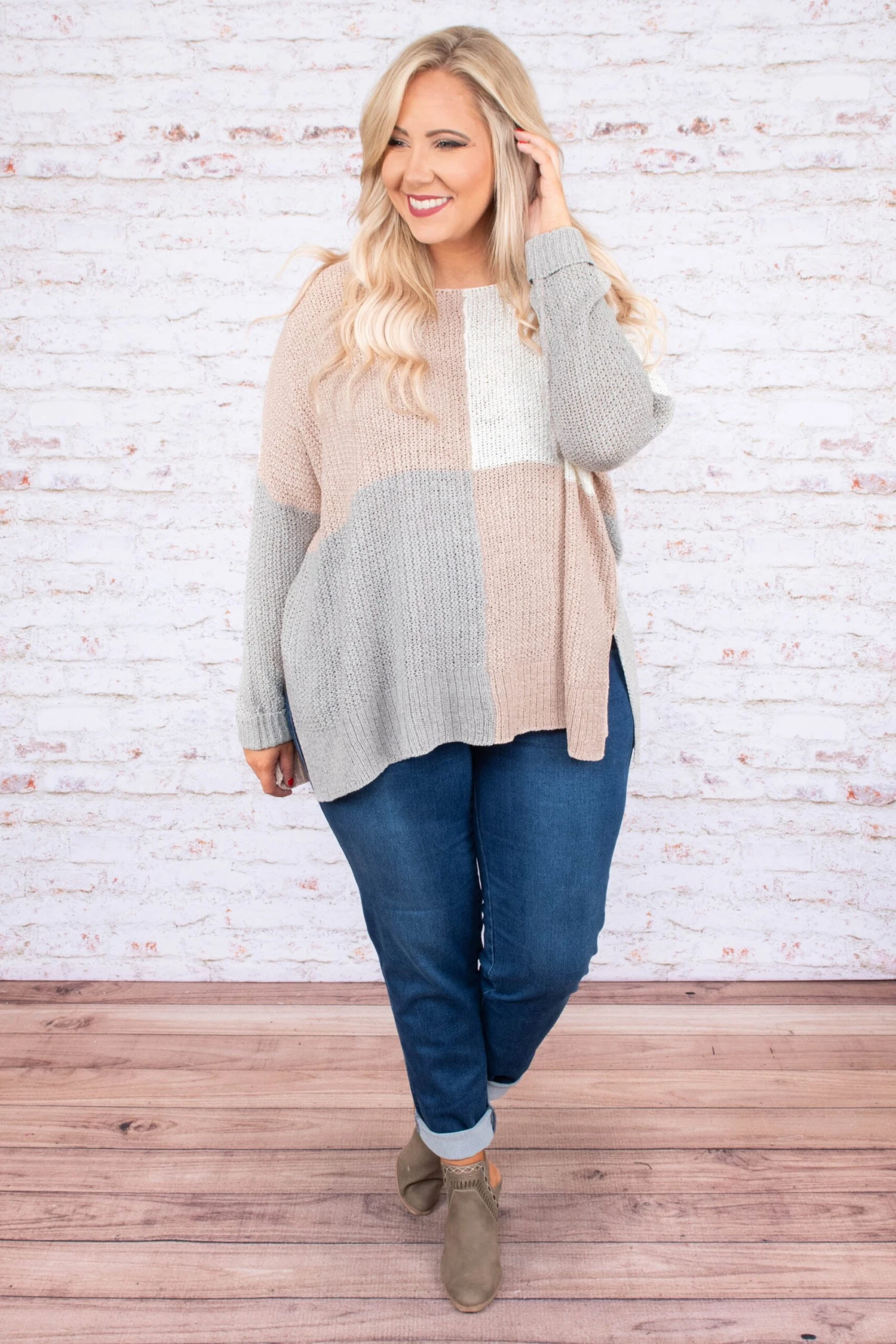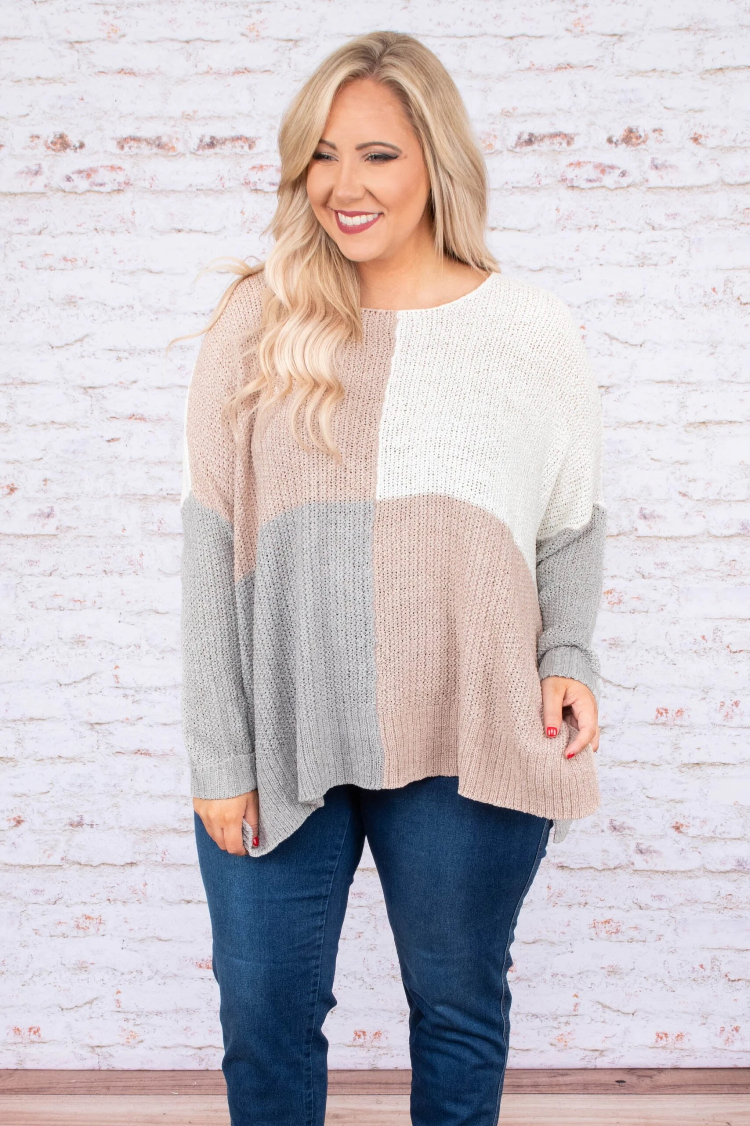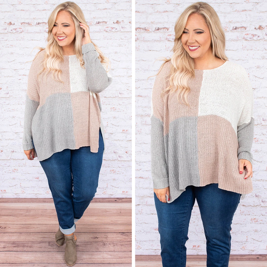 Go your own way in the fashion world, and make this sweater a staple piece in your wardrobe! This sweater has a bold color block pattern with neutral colors you can dress up or down and pair with your favorite shoes and accessories! It’s comfortable, figure-flattering, and perfect for the new season! Simply, style this sweater with boots or booties for an effortlessly chic look!