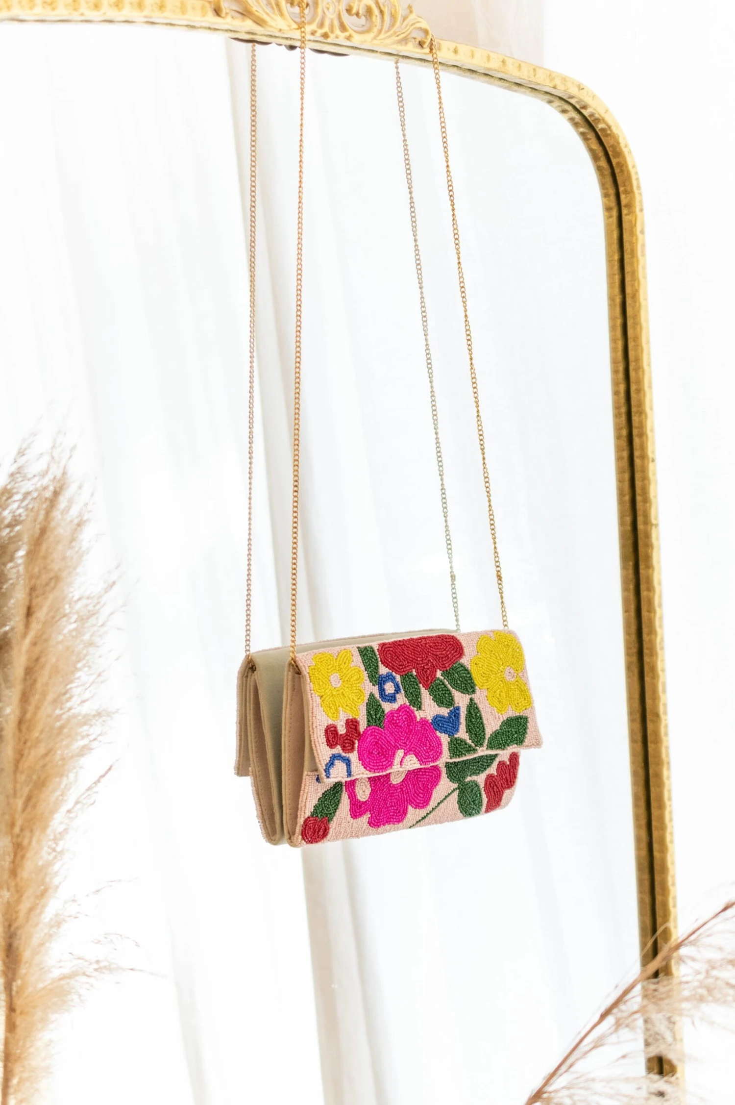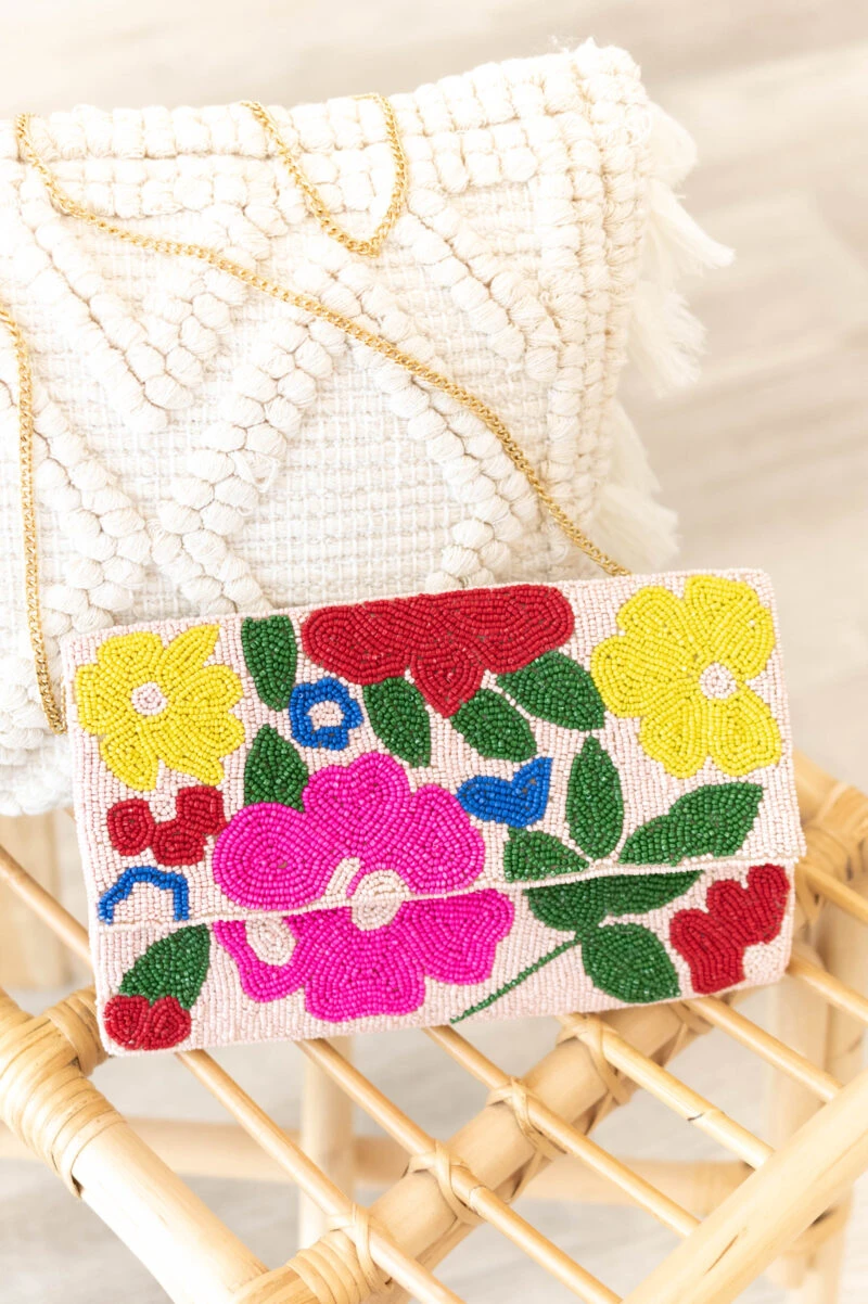 Take this beauty with you on your next flower picking adventure! It has a gorgeous multi color design that is just what you need for the season! The beaded design and floral pattern is a must-have! Style this purse with a sassy dress and heels or cute top and skinnies for a classy chic look!