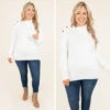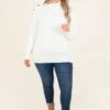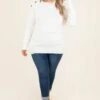 You are going to LOVE this white sweater! It has the softest fabric with a unique asymmetrical neckline! It also features a cute button detailing on one side and a banded hemline! It will pair perfectly with jeggings and booties for a cool weather outfit!